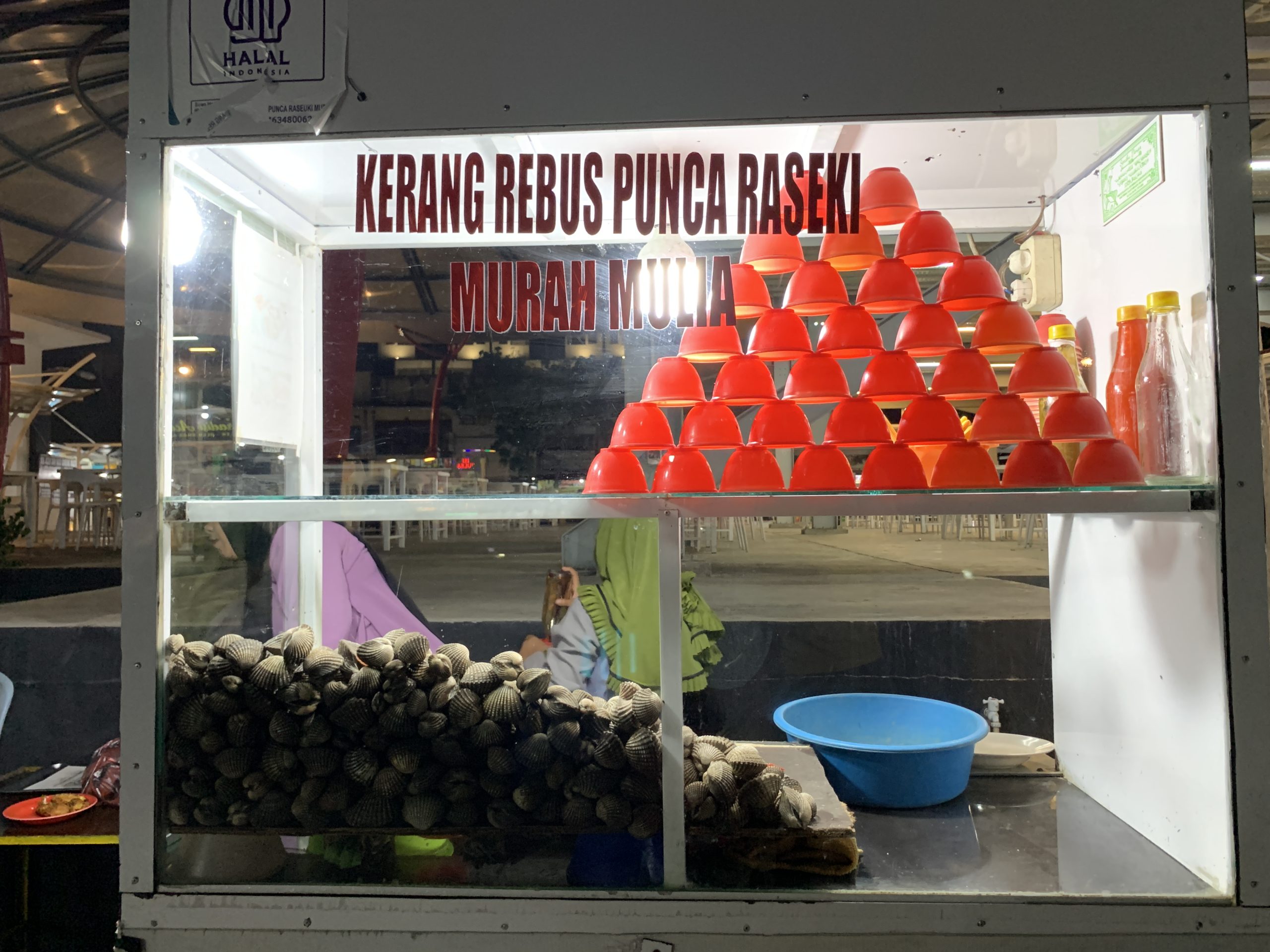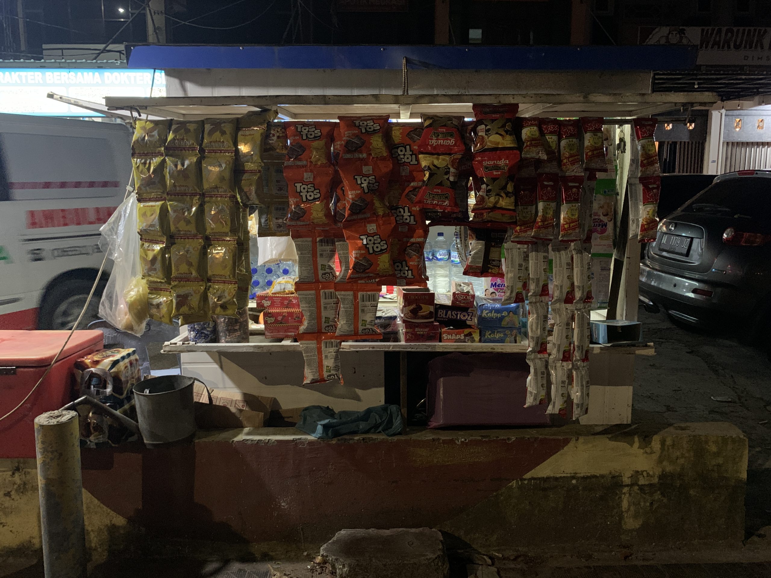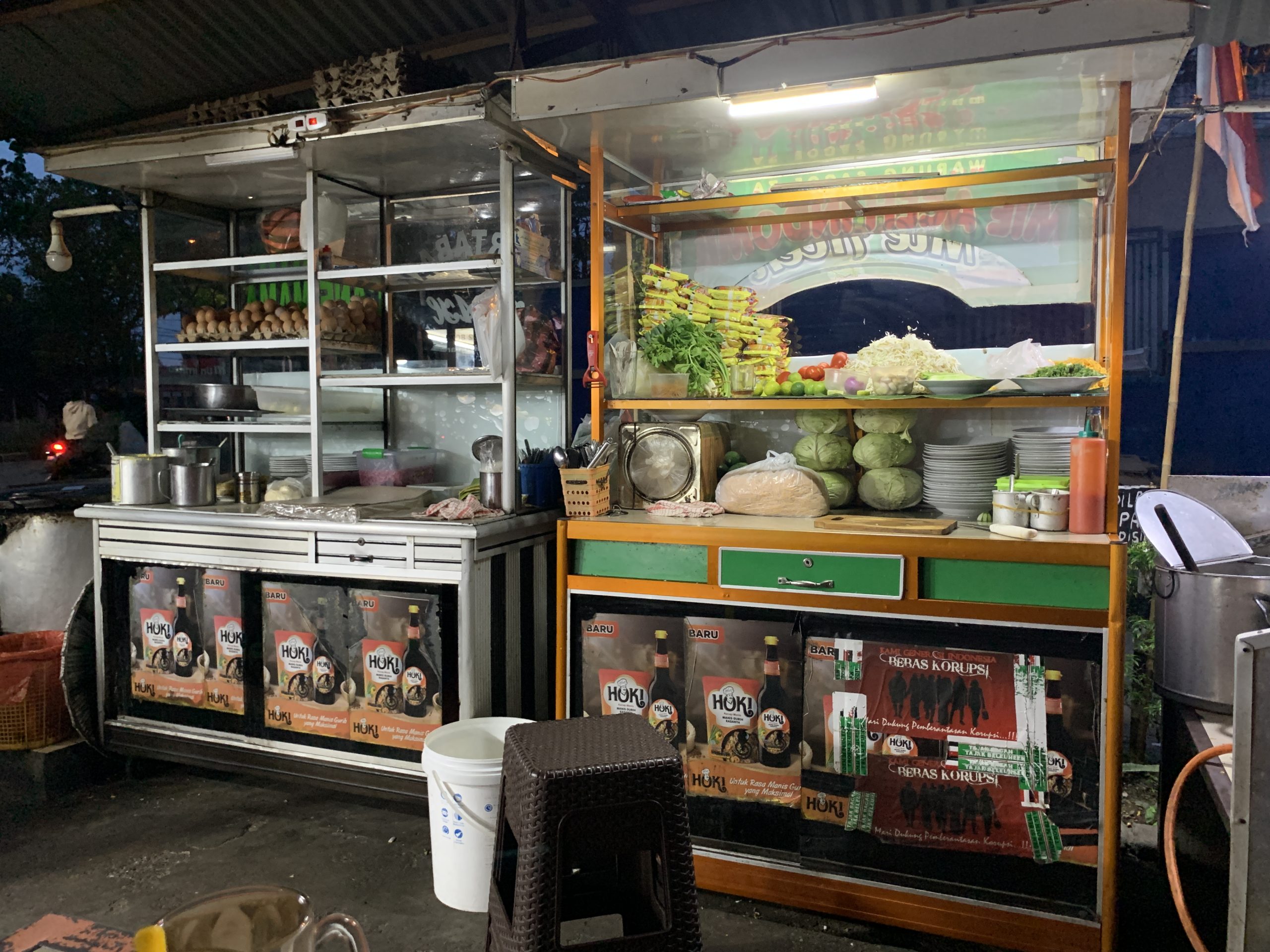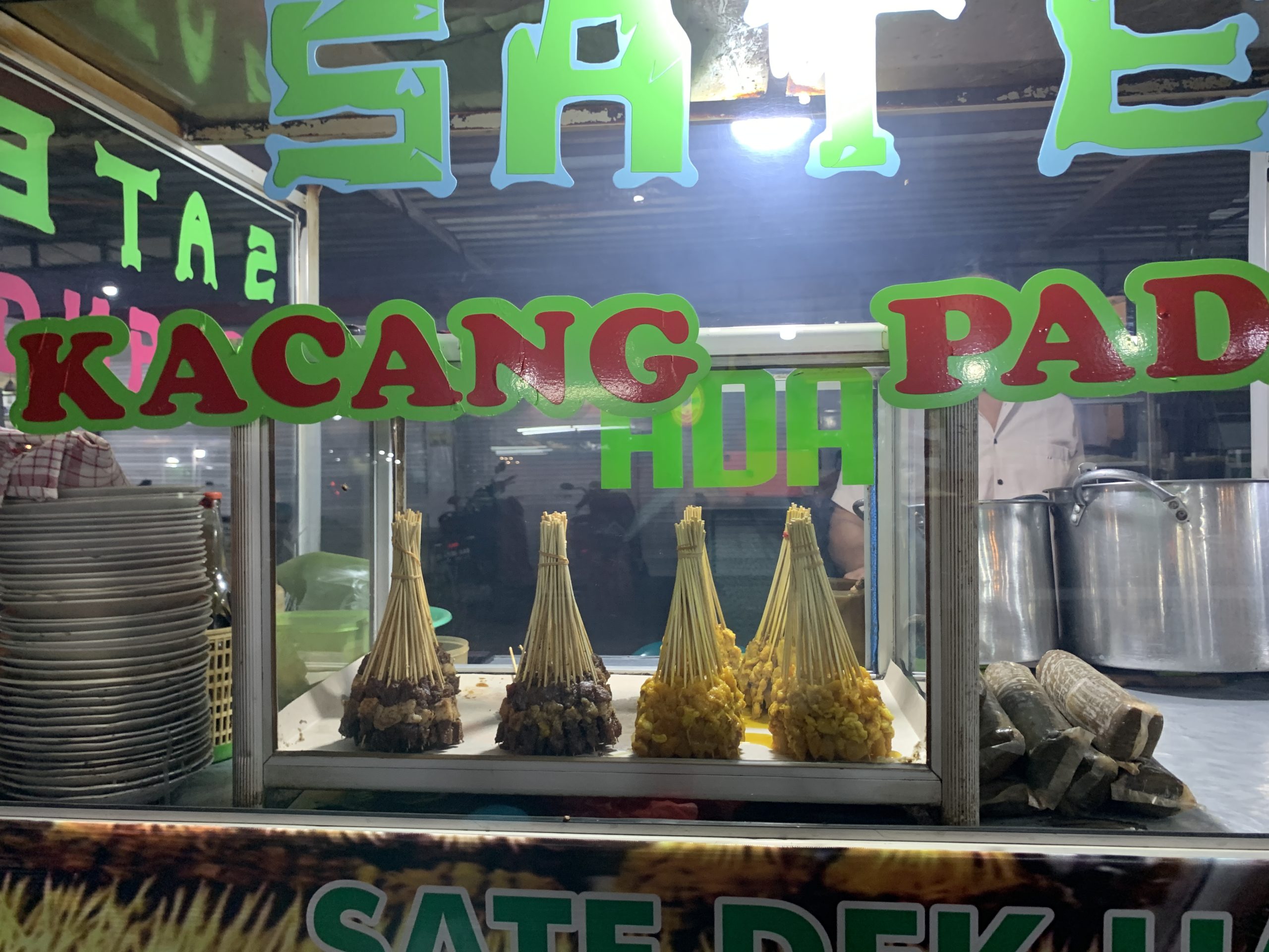 ในช่วงขากลับเราแวะซื้อขนมจากร้านมอเตอร์ไซค์พ่วงข้างมาทานอย่างละนิดละหน่อย อาหารที่นี่มีรูปลักษณ์และรสชาติไม่แตกต่างจาก 3 จังหวัดชายแดนภาคใต้บ้านเรานัก มีรสชาติและกลิ่นเครื่องเทศผสมอยู่ด้วย อาหารหลายอย่างมีความคล้ายคลึงกัน จนฉันเองก็นึกเชื่อมโยงไปว่าน่าจะมีรากเหง้าหรือการหยิบยืมเคลื่อนย้ายด้านวัฒนธรรมอาหารการกินของผู้คนในภูมิภาคมลายู เช่น สะเต๊ะ หอยกอและ ขนมพื้นบ้านหลายอย่าง ก๋วยเตี๋ยวฯลฯ สนนราคาอาหารมื้อนี้ก็ไม่แพง ทาน 2 คน ในราคาร้อยกว่าบาทเงินไทย เมื่ออิ่มจากการทานมื้อค่ำ เราถือโอกาสเดินย่อยอาหารสำรวจตลาดกลางคืนในบริเวณใกล้เคียงที่ตอนนี้ยังคงคึกคัก โดยเฉพาะร้านขายสะเต๊ะเนื้อที่ดูเหมือนจะเป็นที่นิยมของวัยรุ่นในเมืองนี้จนเข้าแถวต่อคิวกันจนเต็มบริเวณริมทางเท้า