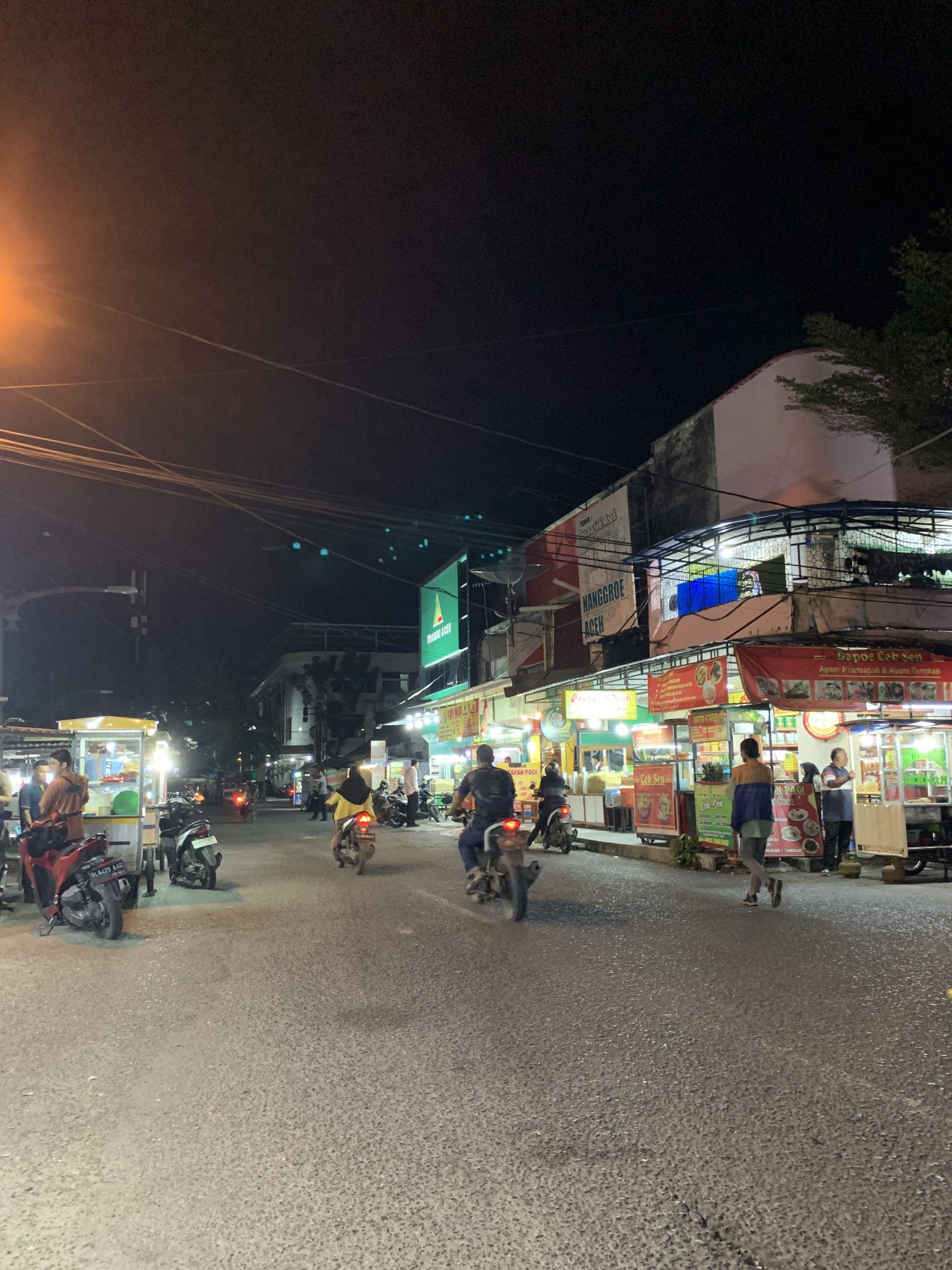 การจัดงานประชุม ฯ ครั้งนี้ครอบคลุมเวลา 3 วัน ในช่วงค่ำคืนสุดท้ายของการประชุมฉันได้มีโอกาสในการเดินตระเวนรอบตัวเมืองของอาเจะห์ ฉันและเพื่อนอีกคนที่เข้าร่วมการประชุมใช้วิธีการเดินเท้ารอบ ๆ เมืองเพื่อให้สามารถเข้าถึงผู้คนของท้องถิ่นและสามารถดื่มด่ำกับบรรยากาศให้ลึกซึ้งยิ่งขึ้น ด้วยช่วงเวลาที่มีไม่ยาวนานนักของค่ำคืนนั้น เราเริ่มต้นการเดินทางสำรวจด้วยการตระเวนหาของกินที่คนในท้องถิ่นนิยมกินกัน