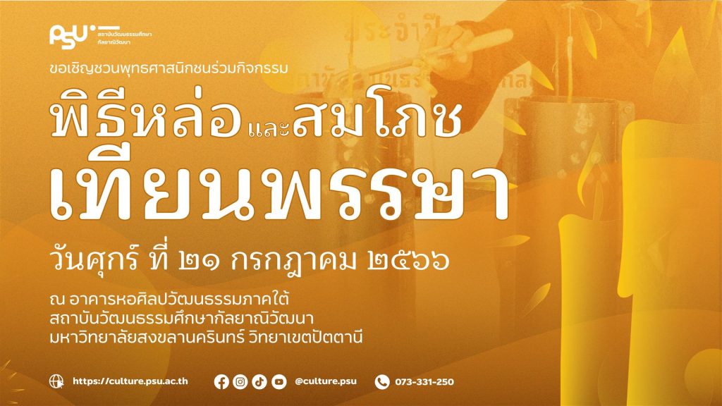 ข่าววิทยาเขตปัตตานี, ข่าวสารประชาสัมพันธ์ประมวลภาพพิธีหล่อเทียนและสมโภชเทียนพรรษา ประจำปี ๒๕๖๖ sannusee / 25 กรกฎาคม 2023 คลิกเพื่อชมภาพเพิ่มเ