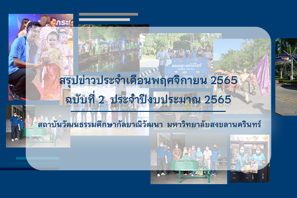 ข่าวสารประชาสัมพันธ์สรุปข่าวประจำเดือนพฤศจิกายน 2565 สถาบันวัฒนธรรมศึกษากัลยาณิวัฒนา มหาวิทยาลัยสงขลานครินทร์ sannusee / 2 ธันวาคม 2022