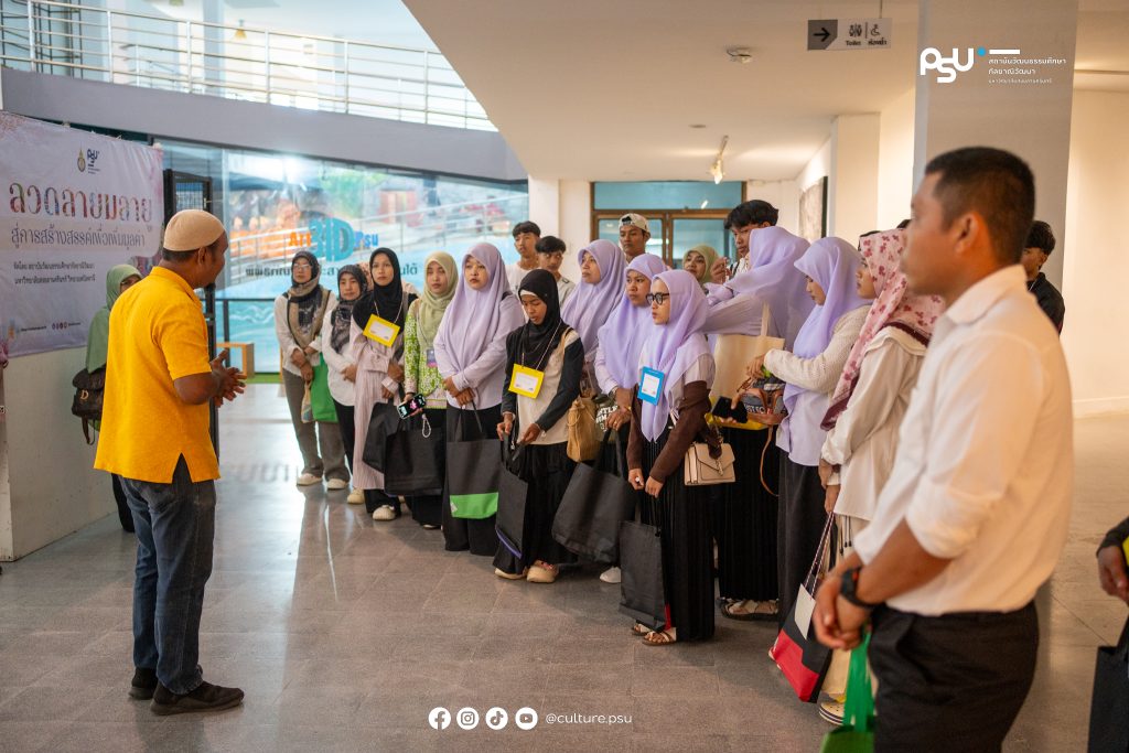นักศึกษารายวิชา Storytelling สาขานวัตกรรมการสื่อสารและออกแบบ คณะวิทยาการสื่อสาร ในโอกาสเข้าเยี่ยมชมแหล่งเรียนรู้ศิลปะและวัฒนธรรมชายแดนใต้ ณ หอศิลปวัฒนธรรมภาคใต้ วิทยาเขตปัตตานี