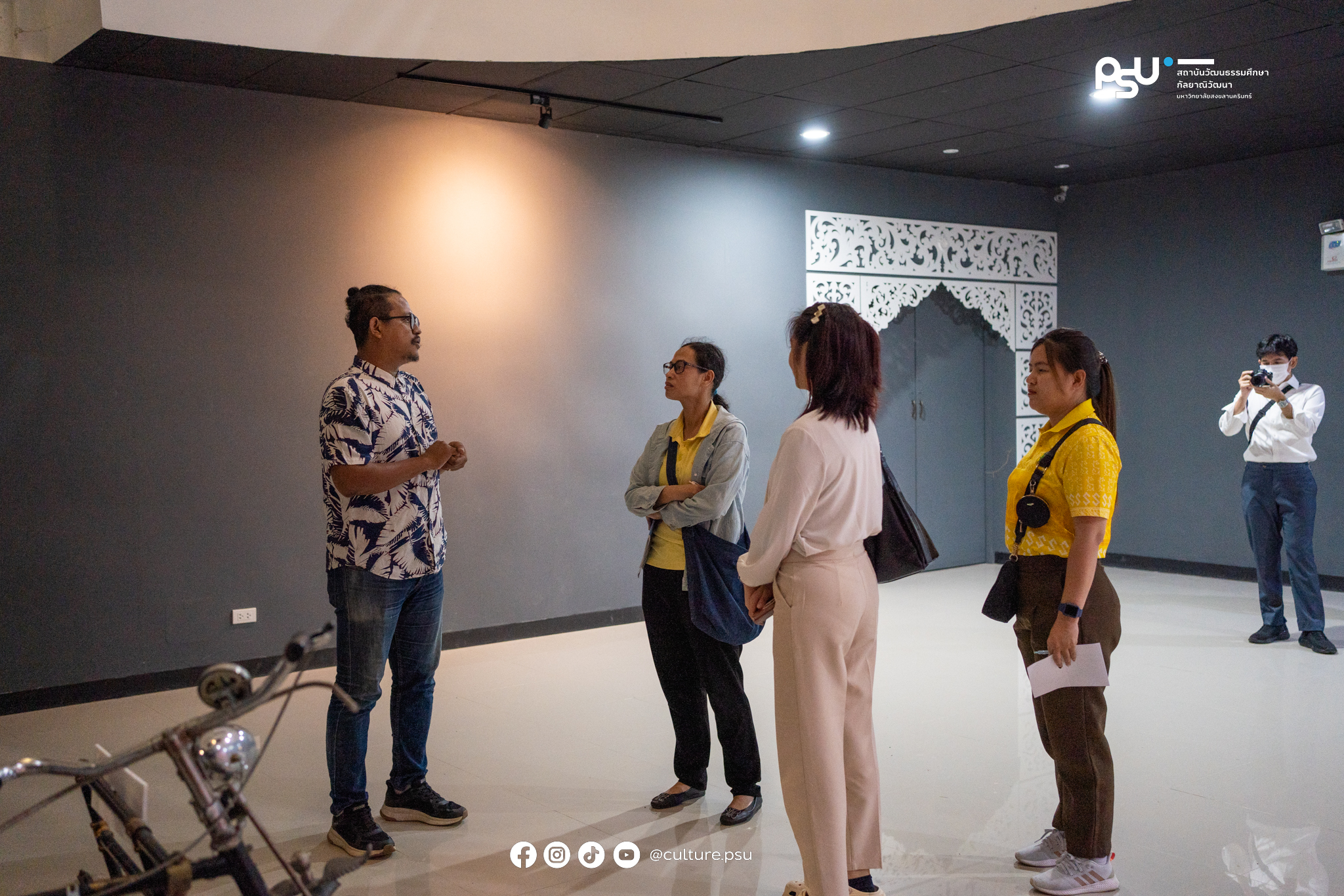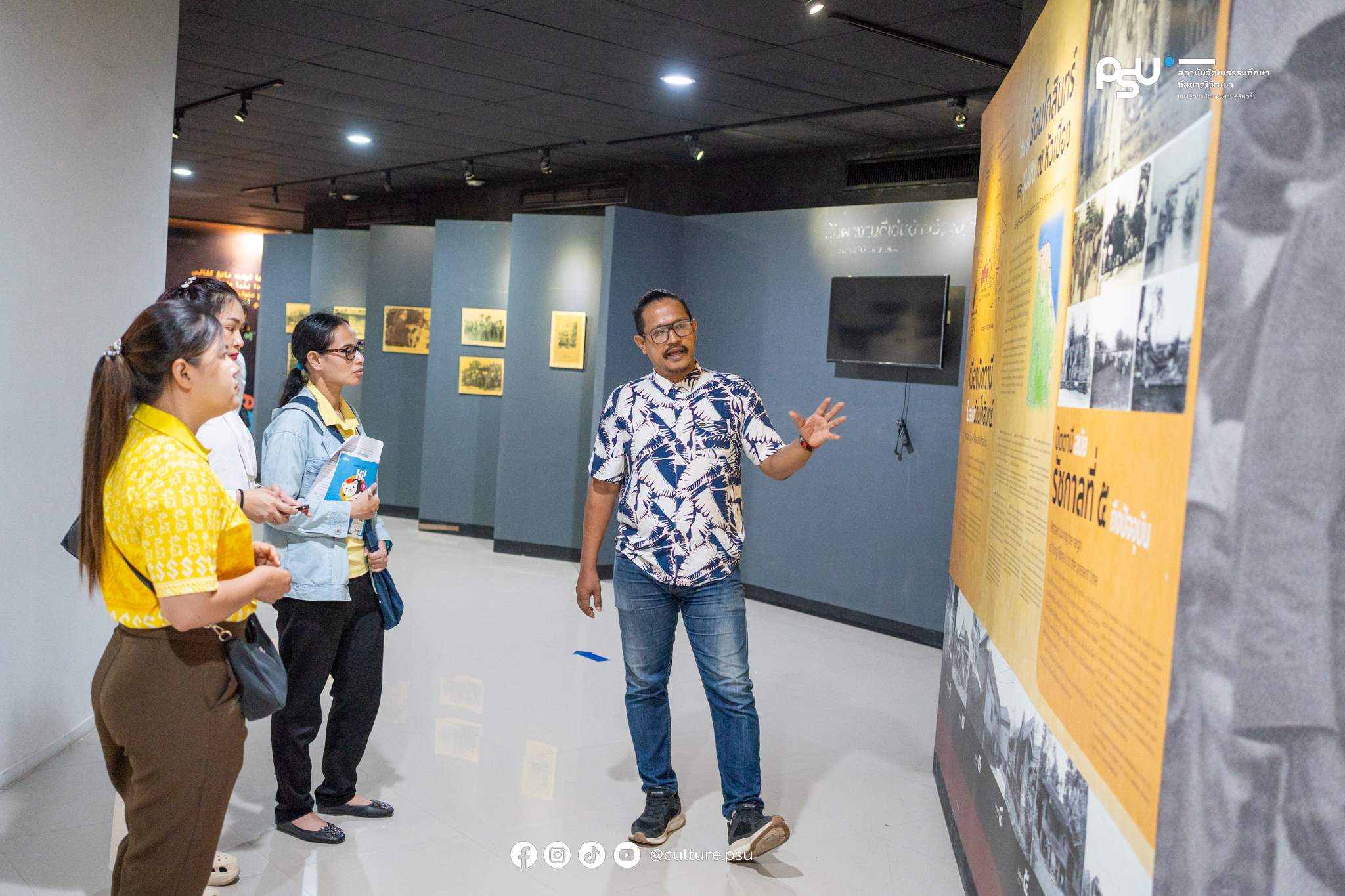 สถาบันวัฒนธรรมศึกษากัลยาณิวัฒนา มหาวิทยาลัยสงขลานครินทร์ ต้อนรับคณะจากเทศบาลเมืองปัตตานี เข้าเยี่ยมชมแหล่งเรียนรู้ศิลปะและวัฒนธรรมชายแดนใต้ ณ หอวัฒนธรรมภาคใต้ เพื่อแลกเปลี่ยนข้อมูลและศึกษารูปแบบการจัดนิทรรศการสำหรับแหล่งเรียนรู้ของเทศบาล โดยมีนายสราวุฒิ เดชกมล นักวิชาการของสถาบันฯ เป็นผู้นำชมและให้ข้อมูลตลอดการเยี่ยมชม