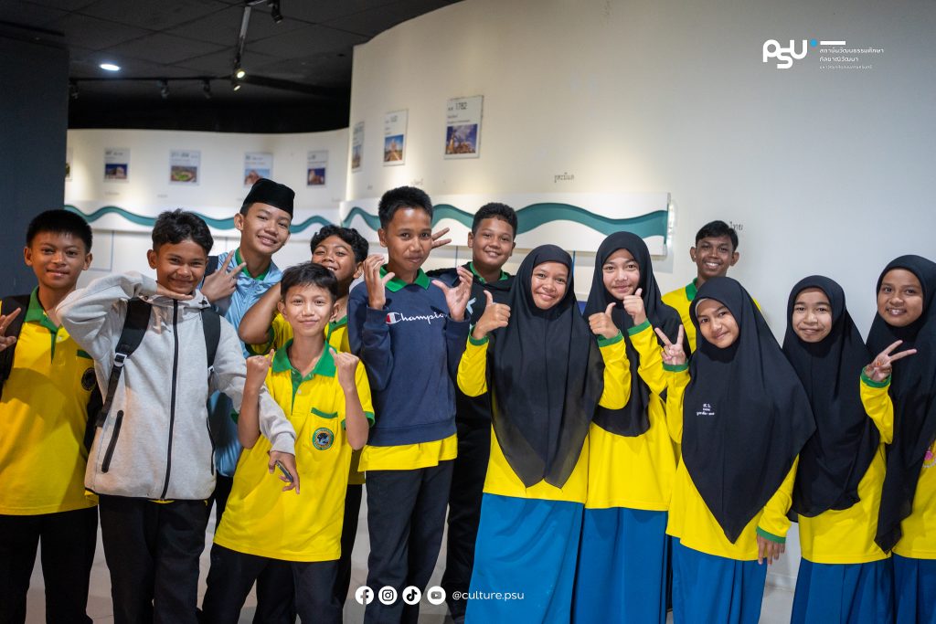 4 กุมภาพันธ์ 2569 สถาบันวัฒนธรรมศึกษากัลยาณิวัฒนา มหาวิทยาลัยสงขลานครินทร์ ให้การต้อนรับคุณครูและนักเรียนจากโโรงเรียนสุขสวัสดิ์วิทยา อำเภอยะหา จังหวัดยะลา เข้าเยี่ยมชมแหล่งเรียนรู้ด้านศิลปะและวัฒนธรรมชายแดนใต้ ณ หอศิลปวัฒนธรรมภาคใต้ พร้อมเยี่ยมชม พิพิธภัณฑ์เรือนอำมาตย์โทพระยาพิบูลพิทยาพรรค และนิทรรศการเหรียญตราและเครื่องถ้วย ณ พิพิธภัณฑ์พระเทพญานโมลี