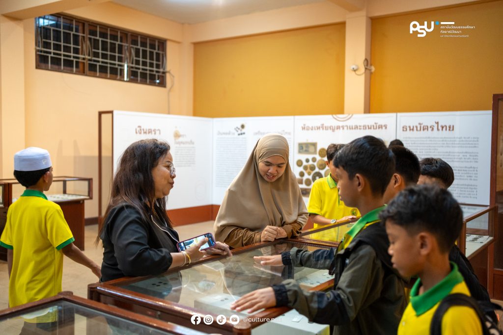 4 กุมภาพันธ์ 2569 สถาบันวัฒนธรรมศึกษากัลยาณิวัฒนา มหาวิทยาลัยสงขลานครินทร์ ให้การต้อนรับคุณครูและนักเรียนจากโโรงเรียนสุขสวัสดิ์วิทยา อำเภอยะหา จังหวัดยะลา เข้าเยี่ยมชมแหล่งเรียนรู้ด้านศิลปะและวัฒนธรรมชายแดนใต้ ณ หอศิลปวัฒนธรรมภาคใต้ พร้อมเยี่ยมชม พิพิธภัณฑ์เรือนอำมาตย์โทพระยาพิบูลพิทยาพรรค และนิทรรศการเหรียญตราและเครื่องถ้วย ณ พิพิธภัณฑ์พระเทพญานโมลี