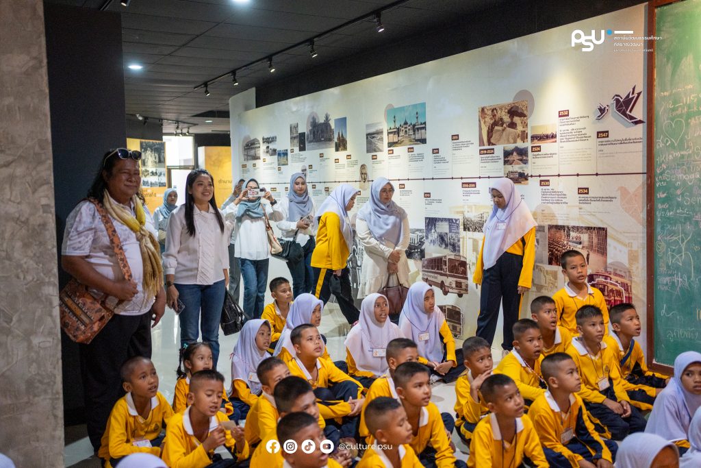 6 กุมภาพันธ์ 2569 สถาบันวัฒนธรรมศึกษากัลยาณิวัฒนา มหาวิทยาลัยสงขลานครินทร์ ให้การต้อนรับคุณครูและนักเรียนจากโรงเรียนบ้านยาแลเบ๊าะ อำเภอรือเสาะ จังหวัดนราธิวาส เข้าเยี่ยมชมแหล่งเรียนรู้ด้านศิลปะและวัฒนธรรมชายแดนใต้ ณ หอศิลปวัฒนธรรมภาคใต้ พร้อมเยี่ยมชม พิพิธภัณฑ์เรือนอำมาตย์โทพระยาพิบูลพิทยาพรรค และนิทรรศการเหรียญตราและเครื่องถ้วย ณ พิพิธภัณฑ์พระเทพญานโมลี