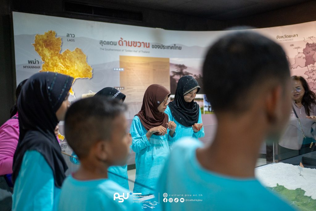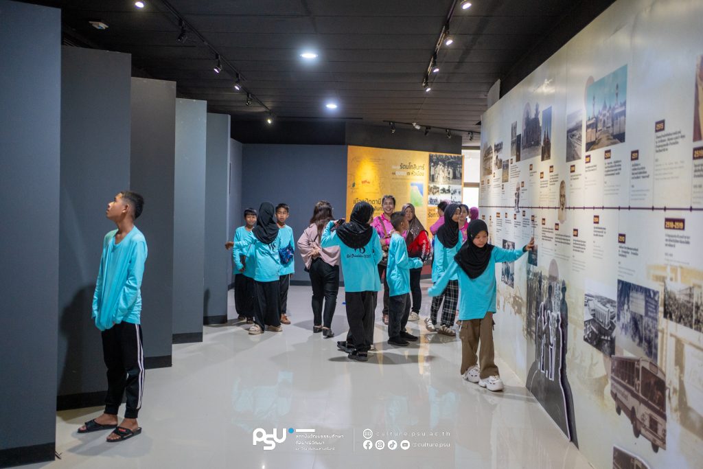 สถาบันวัฒนธรรมศึกษากัลยาณิวัฒนา มหาวิทยาลัยสงขลานครินทร์ ให้การต้อนรับคุณครูและนักเรียนจากโรงเรียนวัดศรีสุดาจันทร์ อำเภอปะนาเระ จังหวัดปัตตานี เข้าเยี่ยมชมแหล่งเรียนรู้ด้านศิลปะและวัฒนธรรมชายแดนใต้ ณ หอศิลปวัฒนธรรมภาคใต้ พร้อมเยี่ยมชม พิพิธภัณฑ์เรือนอำมาตย์โทพระยาพิบูลพิทยาพรรค และนิทรรศการเหรียญตราและเครื่องถ้วย ณ พิพิธภัณฑ์พระเทพญานโมลี