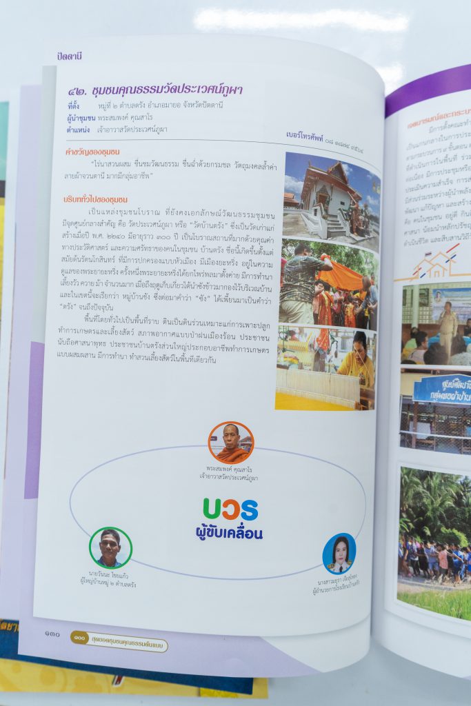 ชุมชนคุณธรรมวัดประเวศน์ภูผา ต.บ้านตรัง อ.มายอ จ.ปัตตานี ซึ่งเป็นหนึ่งในพื้นที่ความรับผิดชอบ โครงการ ยกระดับเศรษฐกิจและสังคมแบบบูรณาการรายตำบล ( 1 ตำบล 1 มหาวิทยาลัย ) ของ สถาบันวัฒนธรรมศึกษากัลยาณิวัฒนา ได้รับเลือกเป็น ๑ ใน ๑๐๐ ชุมชนคุณธรรมต้นแบบ จากหนังสือ “๑๐๐ สุดยอด ชุมชนคุณธรรมต้นแบบ” โดยกระทรวงวัฒนธรรม