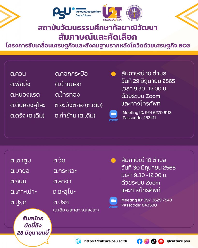 สถาบันวัฒนธรรมศึกษากัลยาณิวัฒนา กำหนดสัมภาษณ์และคัดเลือกโครงการขับเคลื่อนเศรษฐกิจและสังคมฐานรากหลังโควิดด้วยเศรษฐกิจ BCG