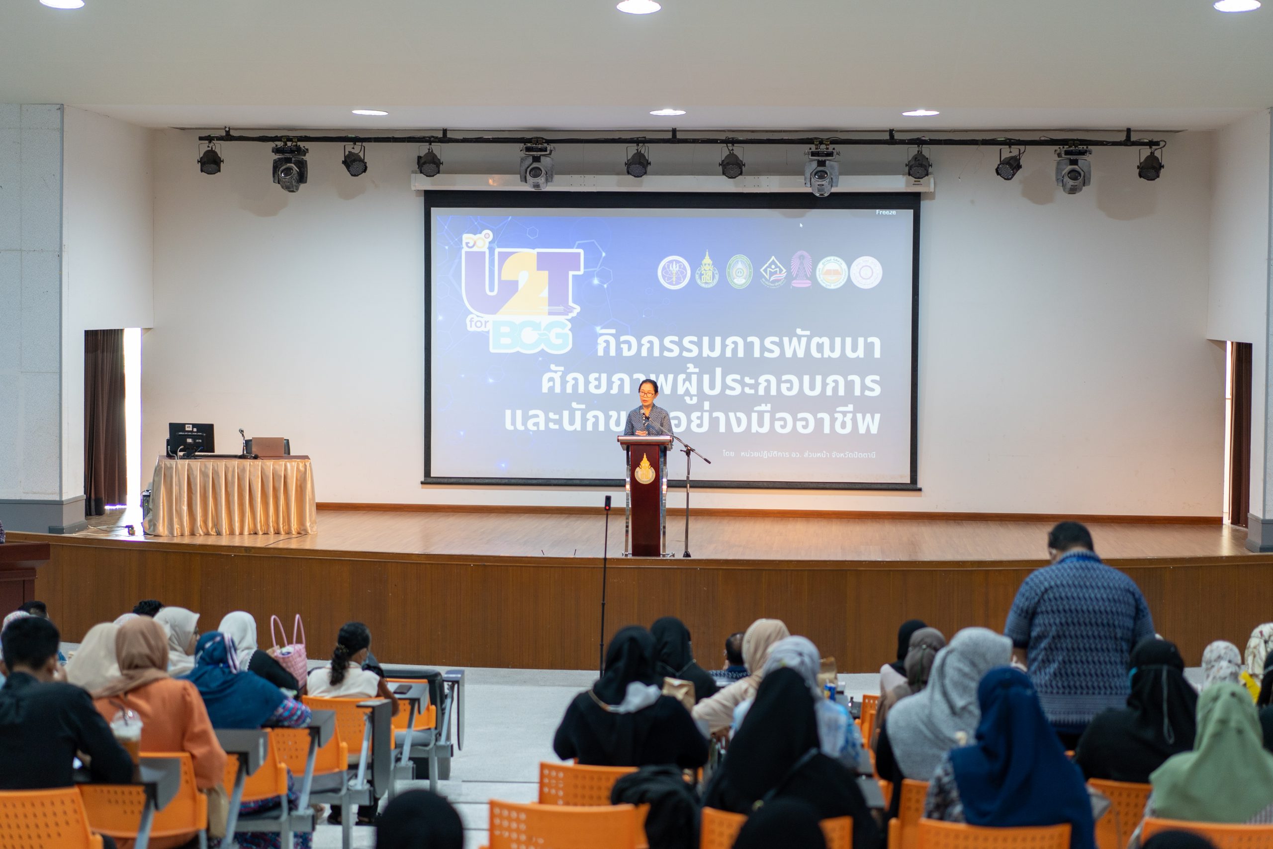 สถาบันวัฒนธรรมศึกษากัลยาณิวัฒนา นำโดย ผู้ช่วยศาสตราจารย์ ดร.พรปวีณ์ พุ่มเกิด ผู้อำนวยการ พร้อมด้วย ดร.ชนกิตติ์ ธนะสุข รองผู้อำนวยการ และบุคลากรสถาบันฯ นำทีม C.I.A ตัวแทน U2T สถาบันฯ ร่วมกิจกรรมการพัฒนาศักยภาพผู้ประกอบการและนักขายอย่างมืออาชีพภายใต้โครงการขับเคลื่อนเศรษฐกิจและสังคมฐานรากหลังโควิดด้วยเศรษฐกิจ BCG (U2T for BCG) ณ หอประชุมใหญ่ คณะวิทยาการสื่อสาร มหาวิทยาลัยสงขลานครินทร์ วิทยาเขตปัตตานี