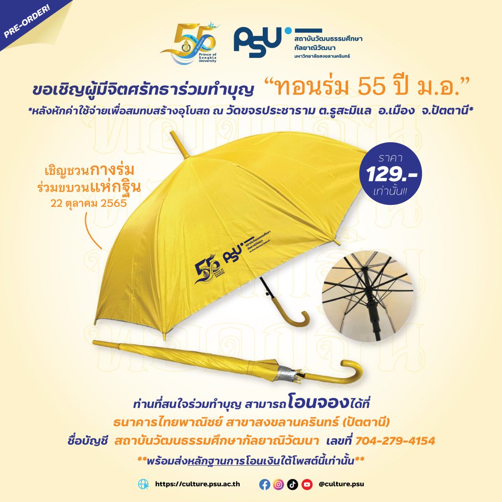 สถาบันวัฒนธรรมศึกษากัลยาณิวัฒนา ขอเชิญผู้มีจิตศรัทธาร่วมทำบุญ “ทอนร่ม 55 ปี ม.อ.”