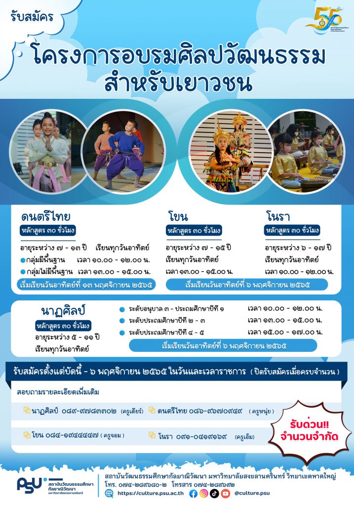 รับสมัครเยาวชนเข้าร่วมโครงการอบรมศิลปวัฒนธรรมสำหรับเยาวชน