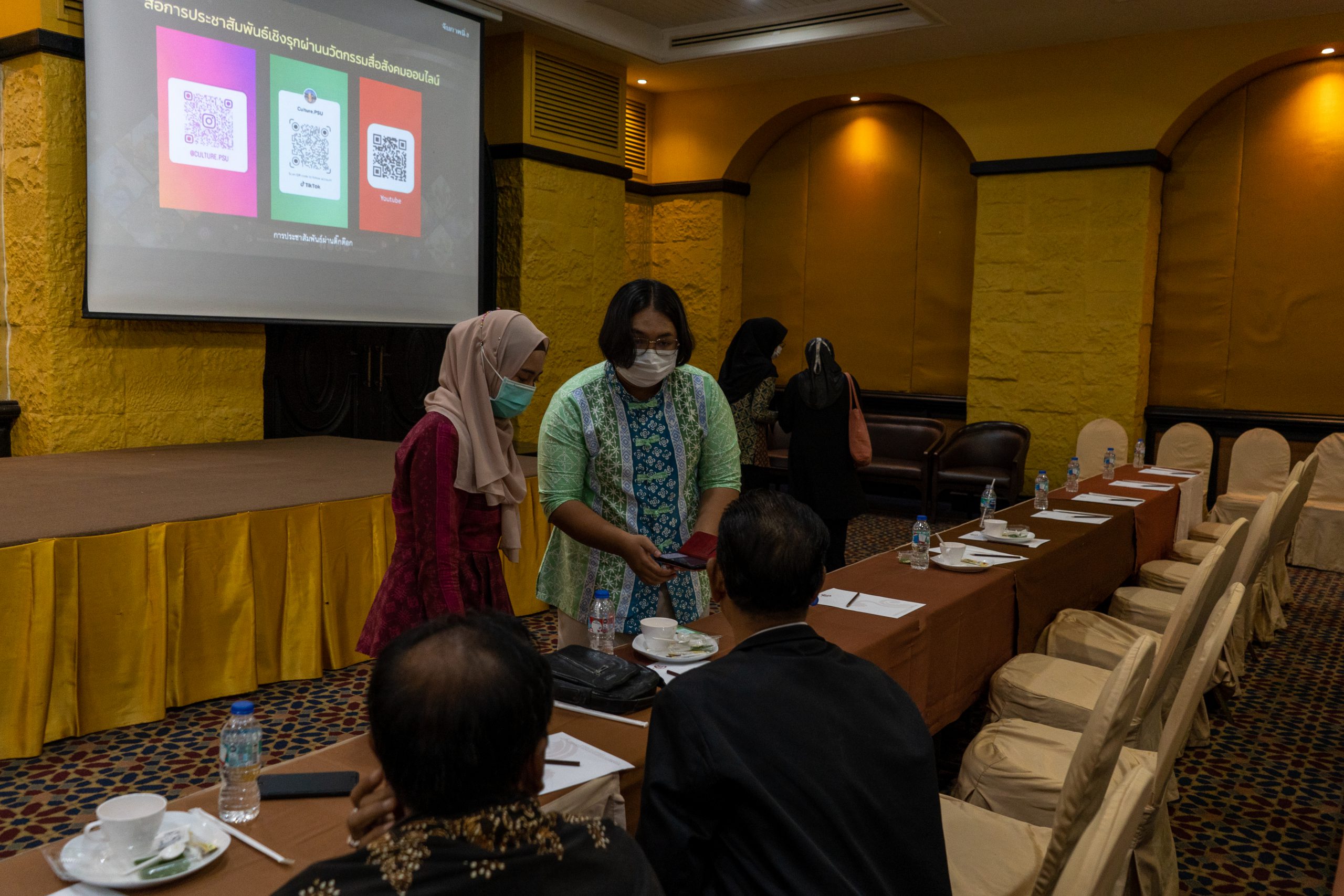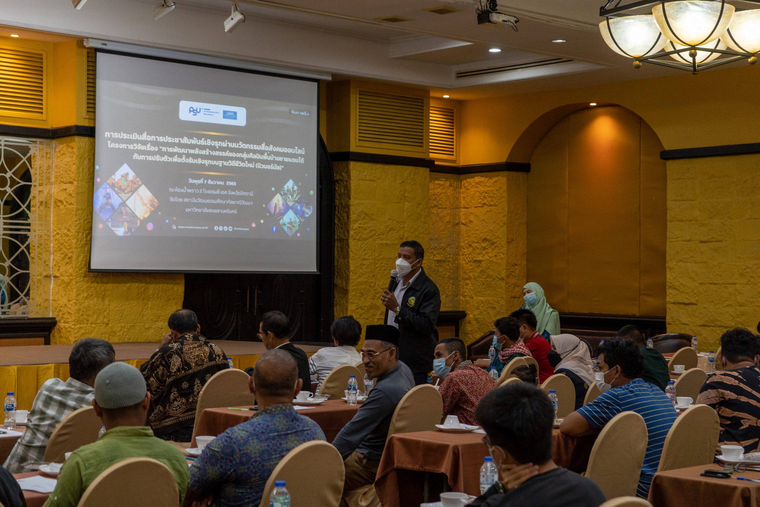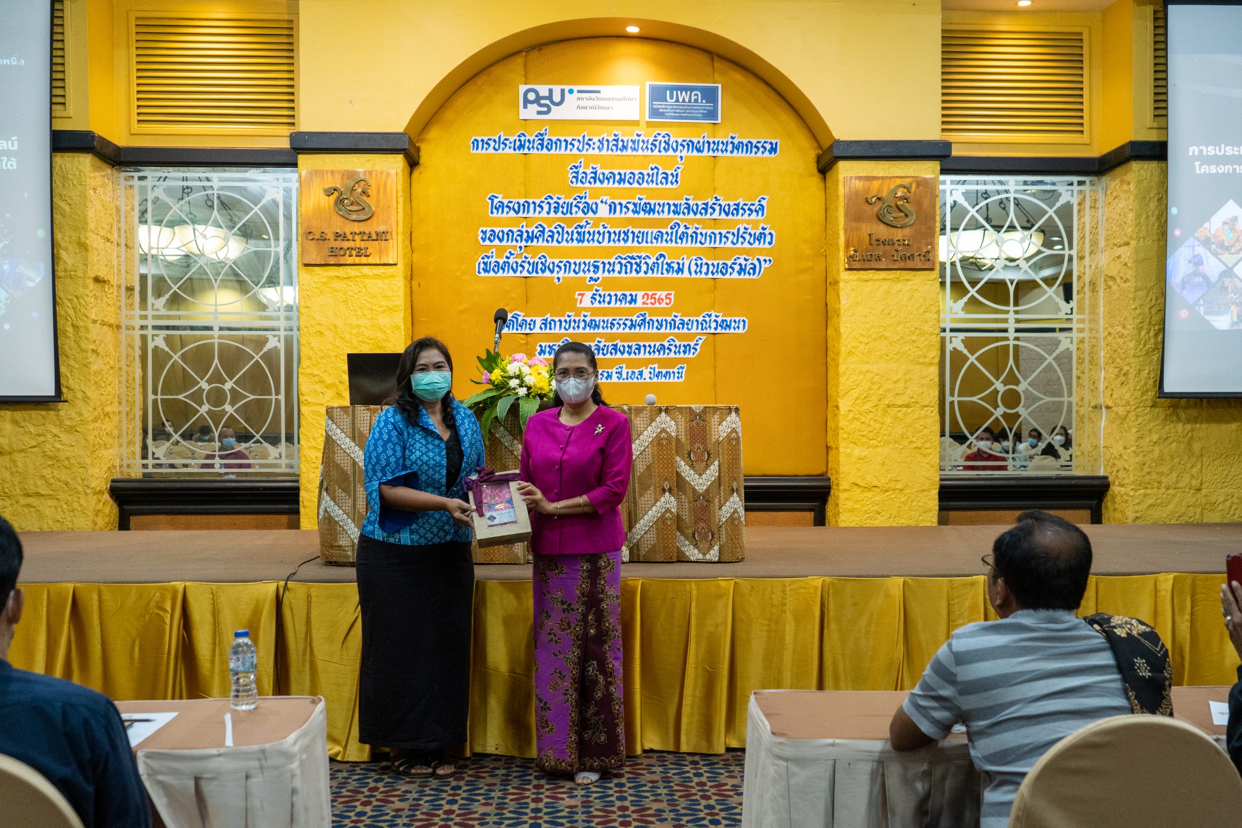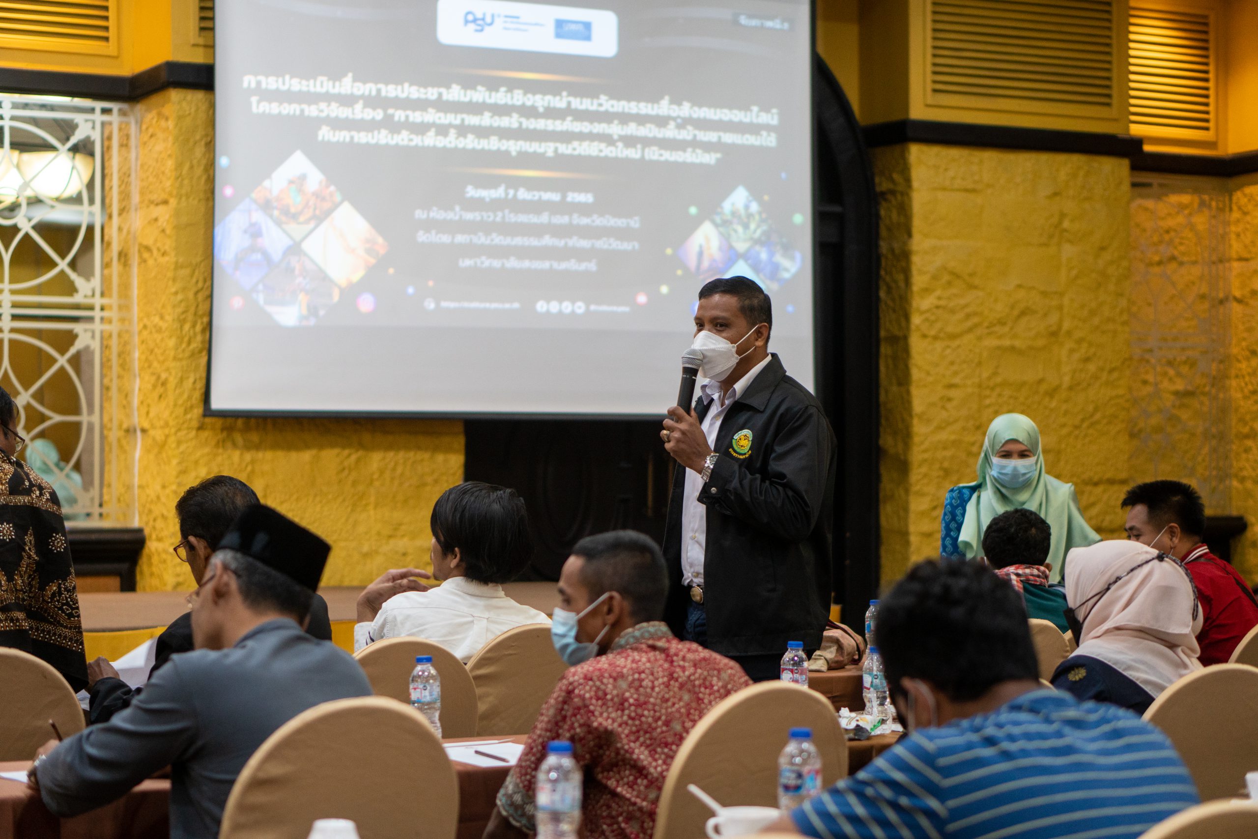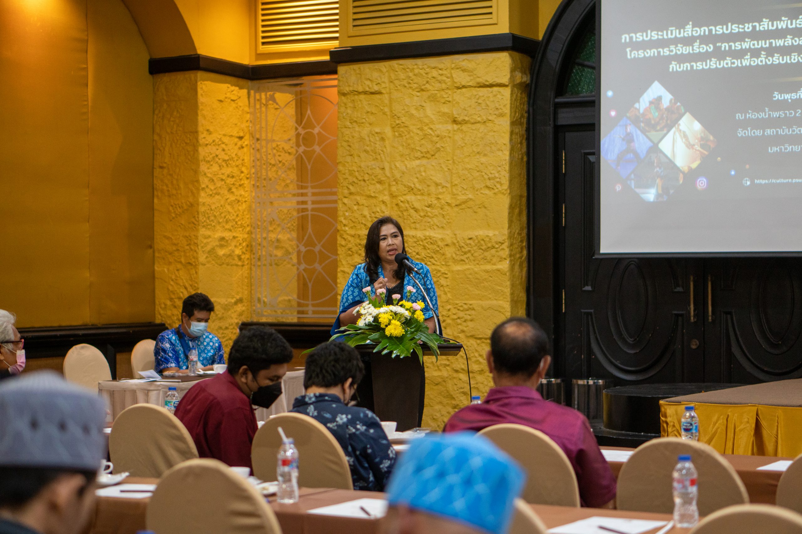 สถาบันวัฒนธรรมศึกษากัลยาณิวัฒนา นำโดย ผู้ช่วยศาสตราจารย์ ดร.พรปวีณ์ พุ่มเกิด หัวหน้าโครงการวิจัยฯ / ผู้อำนวยการ พร้อมกับ ดร.ชนกิตติ์ ธนะสุข รองผู้อำนวยการ และนักวิจัยบุคลากรสถาบันฯ จัดกิจกรรมการประเมินสื่อการประชาสัมพันธ์เชิงรุกผ่านนวัตกรรมสื่อสังคมออนไลน์ โครงการวิจัยเรื่อง “การพัฒนาพลังสร้างสรรค์ของกลุ่มศิลปินพื้นบ้านชายแดนใต้กับการปรับตัวเพื่อตั้งรับเชิงรุกบนฐานวิถีชีวิตใหม่ (นิวนอร์มัล)” โดยมี นางศศิเพ็ญ ละม้ายพันธุ์ วัฒนธรรมจังหวัดปัตตานี เป็นประธานในพิธี และมีตัวแทนจากวัฒนธรรมจังหวัดยะลา นราธิวาส เข้าร่วมด้วย