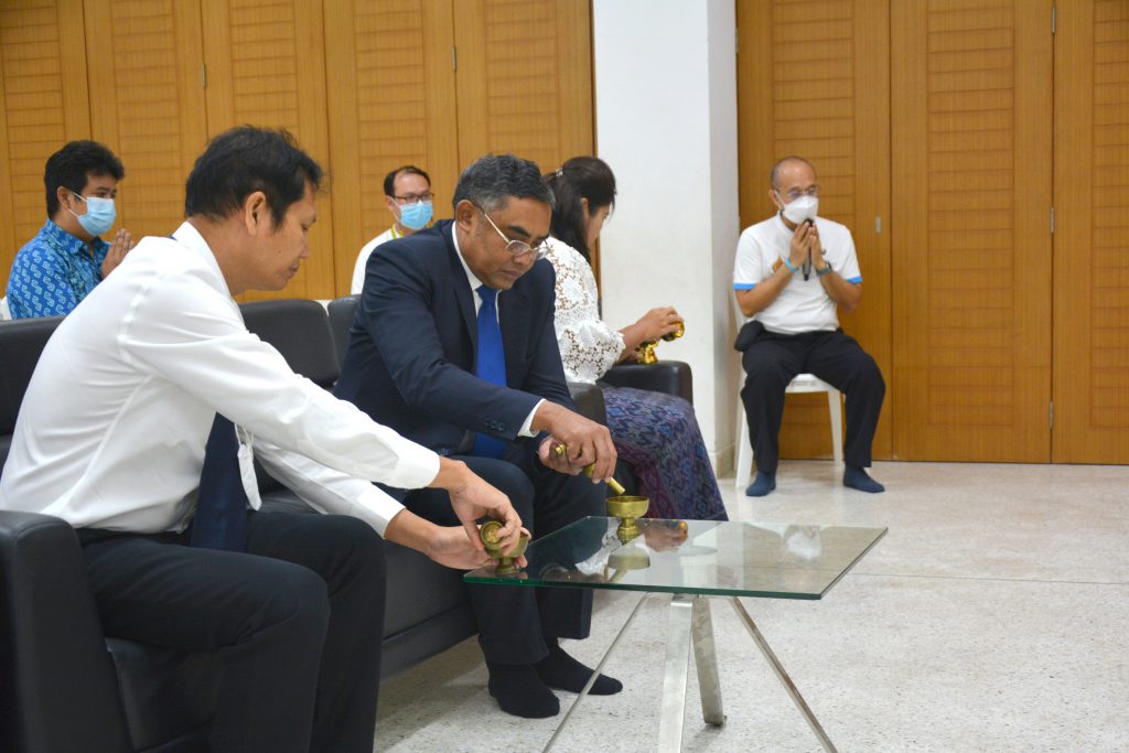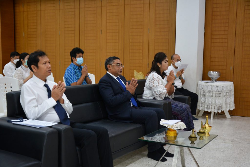 งานทำบุญขึ้นปีใหม่สถาบันวัฒนธรรมศึกษากัลยาณิวัฒนา ประจำปี 2566 7 มกราคม 2023 / By sannusee สถาบันวัฒนธรรมศึกษากัลยาณิวัฒนา มหาวิทยาลัยสงขลานครินทร์ วิทยาเขตหาดใหญ่ จัดงานทำบุญขึ้นปีใหม่สถาบันวัฒนธรรมศึกษากัลยาณิวัฒนา ประจำปี 2566 และร่วมแสดงความจงรักภักดีสวดมนต์ – เจริญจิตภาวนา เพื่อถวายพระพรแด่สมเด็จพระเจ้าลูกเธอ เจ้าฟ้าพัชรกิติยาภา นเรนทิราเทพยวดี กรมหลวงราชสาริณีสิริพัชร มหาวัชรราชธิดา ขอให้พระองค์ทรงหายจากพระอาการประชวรโดยเร็ววัน โดยมีผู้ช่วยศาสตราจารย์ ดร.นิวัติ แก้วประดับ อธิการบดี ร่วมเป็นประธานในพิธี พร้อมด้วยรองศาสตราจารย์ ดร.วิโรจน์ ยูรวงศ์ รองอธิการบดีฝ่ายพัฒนานักศึกษาและศิษย์เก่าสัมพันธ์, รองศาสตราจารย์ ดร.วศิน สุวรรณรัตน์ รองอธิการบดีวิทยาเขตหาดใหญ่, ดร.พนิดา สุขศรีเมือง ผู้ช่วยอธิการบดีฝ่ายพัฒนานักศึกษา, ผู้ช่วยศาสตราจารย์ ดร.พรปวีณ์ พุ่มเกิด ผู้อำนวยการ ดร.ชนกิตติ์ ธนะสุข รองผู้อำนวยการ และบุคลากรสถาบันฯ เข้าร่วมงานดังกล่าว ณ ชั้น 1 อาคารศูนย์ส่งเสริมศิลปะและวัฒนธรรม สถาบันวัฒนธรรมศึกษากัลยาณิวัฒนา มหาวิทยาลัยสงขลานครินทร์ วิทยาเขตหาดใหญ Post Views: 27