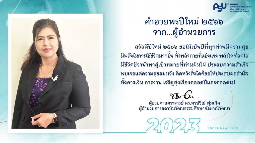 คำอวยพรปีใหม่ จาก ผู้ช่วยศาสตราจารย์ ดร.พรปวีณ์ พุ่มเกิด ผู้อำนวยการสถาบันวัฒนธรรมศึกษากัลยาณิวัฒนา