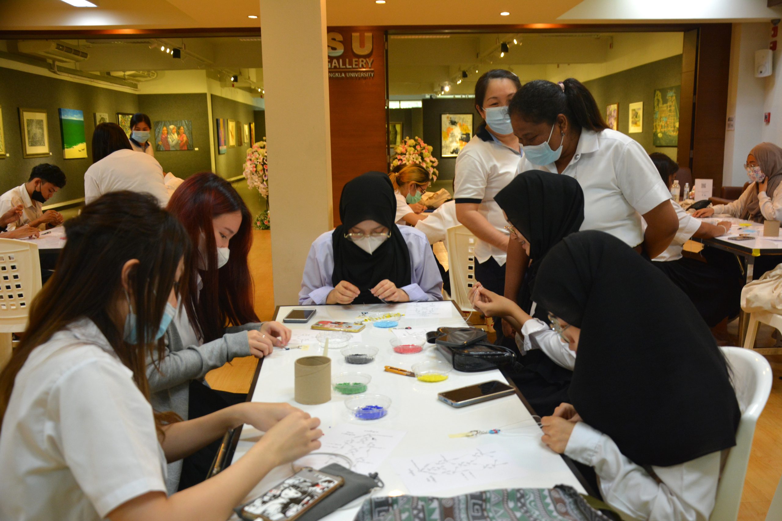 ต้อนรับอาจารย์และนักศึกษาหลักสูตรบริหารธุรกิจบัณฑิต สาขาวิชาการจัดการและความเป็นผู้ประกอบการ (นานาชาติ) คณะวิทยาการจัดการ ชมนิทรรศการ “ผ้าไทยร่วมสมัย แบบฉบับเจ้าฟ้าหญิงฯ” 6 กุมภาพันธ์ 2023 / By sannusee วันที่ 1 กุมภาพันธ์ 2566 สถาบันวัฒนธรรมศึกษากัลยาณิวัฒนา นำโดย ผศ.ดร.พรปวีณ์ พุ่มเกิด ผู้อำนวยการสถาบันฯ กล่าวต้อนรับและให้เกียรตินำอาจารย์และนักศึกษาหลักสูตรบริหารธุรกิจบัณฑิต สาขาวิชาการจัดการและความเป็นผู้ประกอบการ (นานาชาติ) คณะวิทยาการจัดการ ชมนิทรรศการ “ผ้าไทยร่วมสมัย แบบฉบับเจ้าฟ้าหญิงฯ” พร้อมกันนี้อาจารย์และนักศึกษาได้เข้าชมนิทรรศการศิลปกรรม PSU ART GALLERY และกิจกรรม Workshop การรำมโนราห์ การร้อยลูกปัดมโนราห์ เพื่อให้นักศึกษาได้เรียนรู้และเข้าใจถึงศิลปะและวัฒนธรรมท้องถิ่นภาคใต้ ณ อาคารศูนย์ส่งเสริมศิลปะและวัฒนธรรม สถาบันวัฒนธรรมศึกษากัลยาณิวัฒนา มหาวิทยาลัยสงขลานครินทร์ Post Views: 24