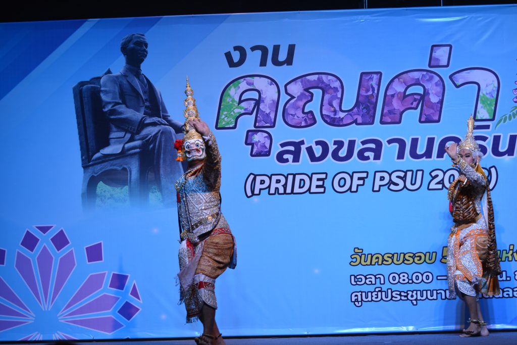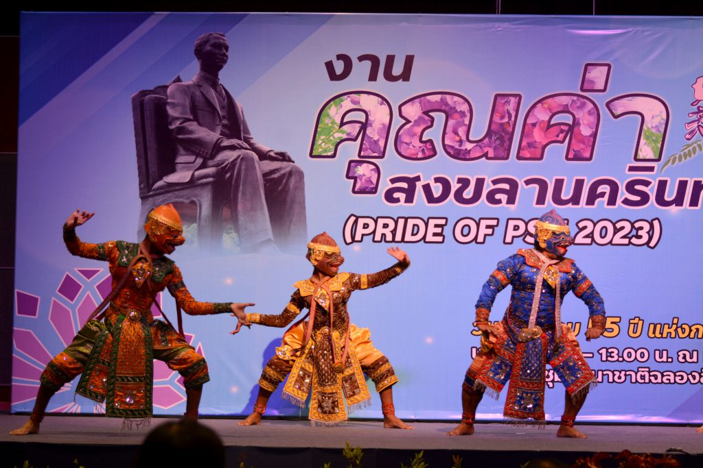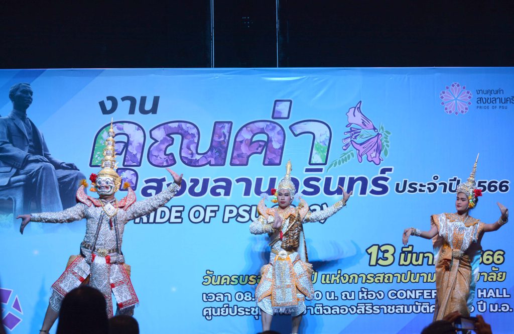 ผู้ช่วยศาสตราจารย์ ดร.พรปวีณ์ พุ่มเกิด ผู้อำนวยการ พร้อมด้วยบุคลากรสถาบันฯ เข้าร่วมงาน “คุณค่าสงขลานครินทร์”By sannusee / 15 มีนาคม 2023 วันที่ 13 มีนาคม 2566 สถาบันวัฒนธรรมศึกษากัลยาณิวัฒนา นำโดยผู้ช่วยศาสตราจารย์ ดร.พรปวีณ์ พุ่มเกิด ผู้อำนวยการ พร้อมด้วยบุคลากรสถาบันฯ เข้าร่วมงาน “คุณค่าสงขลานครินทร์” เพื่อระลึกถึงวันก่อตั้งมหาวิทยาลัยสงขลานครินทร์ และยกย่องเชิดชูบุคลากร นักวิจัย และนักศึกษาที่ได้สร้างชื่อเสียงให้กับมหาวิทยาลัย พร้อมนี้สถาบันฯ ได้นำการแสดงโขนสงขลานครินทร์ “ชุดคุณค่าสงขลานครินทร์” ที่กล่าวถึงมหาวิทยาลัยสงขลานครินทร์ ที่เป็นมหาวิทยาลัยแห่งการพัฒนาของชาวภาคใต้มายาวนาน การแสดงชุดนี้บ่งบอกถึงอัตลักษณ์ของการแสดงโขนในการตีบทและการรำเพลงหน้าพาทย์ เพลงกราวนอกของตัวละครลิงและเพลงตระนิมิตรของตัวละครพระ นาง ยักษ์ โดยมีนักแสดงครบทุกตัวละครที่เป็นตัวแสดงหลักสำคัญในการแสดงโขน เรื่องรามเกียรติ์ ณ ห้องประชุม Conference Hall ศูนย์ประชุมนานาชาติฉลองสิริราชสมับติครบ 60 ปี Post Views: 12