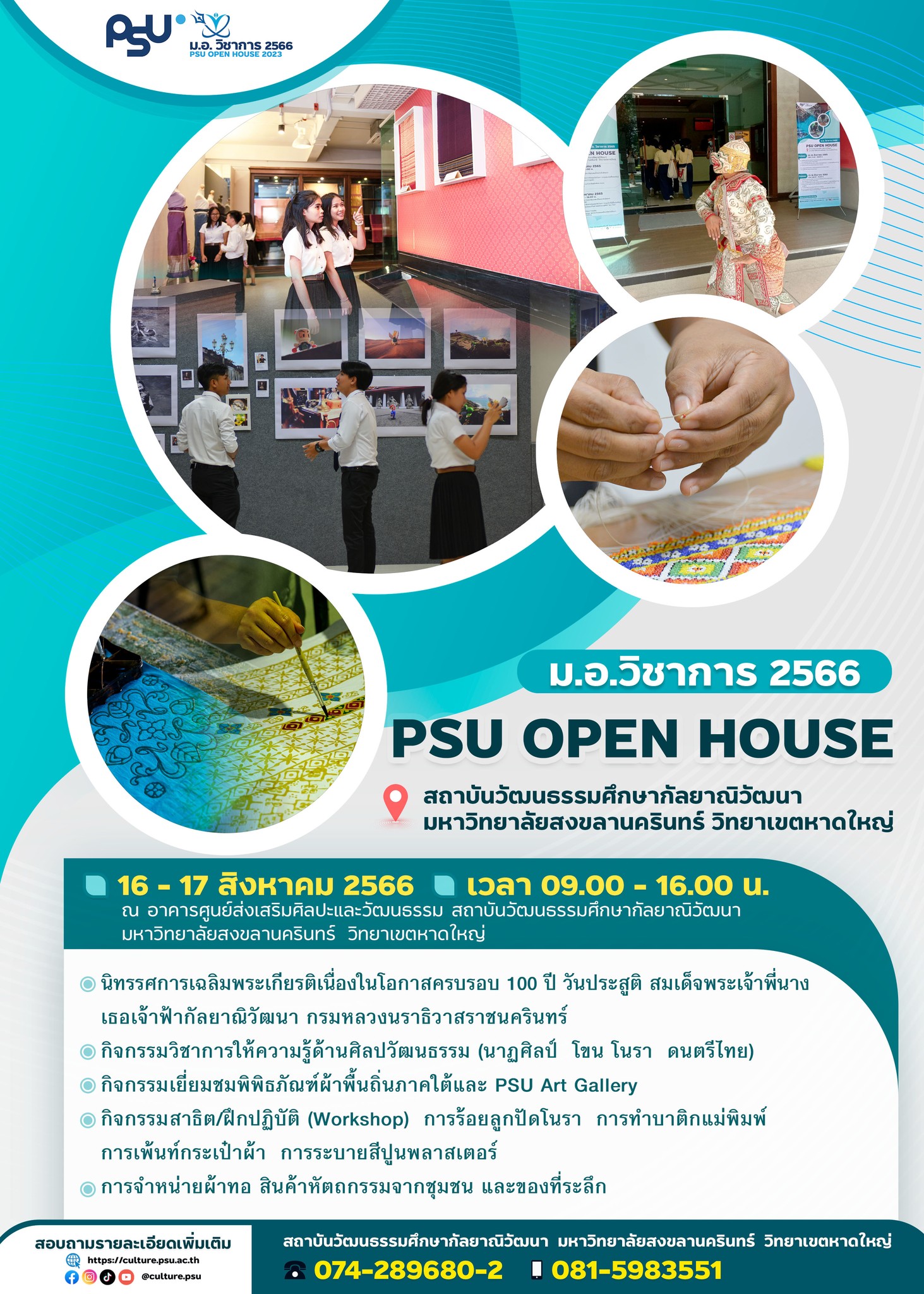 ขอเชิญร่วมงาน ม.อ.วิชาการ 2566 ณ สถาบันวัฒนธรรมศึกษากัลยาณิวัฒนา มหาวิทยาลัยสงขลานครินทร์ วิทยาเขตหาดใหญ่By sannusee / 4 สิงหาคม 2023 ม.อ.วิชาการ 2566 #กลับมาแล้ว! กับ สถาบันวัฒนธรรมศึกษากัลยาณิวัฒนา มหาวิทยาลัยสงขลานครินทร์ #วิทยาเขตหาดใหญ่ 16-17 สิงหาคมนี้ เจอกันแน่นอน เวลา 09.00-16.00 น. #เข้าร่วมกิจกรรมฟรี!พบกับกิจกรรมนิทรรศการเฉลิมพระเกียรติเนื่องในโอกาสครบรอบ 100 ปี วันประสูติ สมเด็จพระเจ้าพี่นาง เธอเจ้าฟ้ากัลยาณิวัฒนา กรมหลวงนราธิวาสราชนครินทร์กิจกรรมวิชาการให้ความรู้ด้านศิลปวัฒนธรรม (นาฏศิลป์ โขน โนรา ดนตรีไทย)กิจกรรมเยี่ยมชมพิพิธภัณฑ์ผ้าพื้นถิ่นภาคใต้และ PSU Art Gallery กิจกรรมสาธิต/ฝึกปฏิบัติ (Workshop) การร้อยลูกปัดโนรา การทำบาติกแม่พิมพ์ การเพ้นท์กระเป๋าผ้า การระบายสีปูนพลาสเตอร์การจําหน่ายผ้าทอ สินค้าหัตถกรรมจากชุมชน และของที่ระลึก ณ อาคารศูนย์ส่งเสริมศิลปะและวัฒนธรรม สถาบันวัฒนธรรมศึกษากัลยาณิวัฒนา มหาวิทยาลัยสงขลานครินทร์ วิทยาเขตหาดใหญ่สอบถามรายละเอียดเพิ่มเติม: สถาบันวัฒนธรรมศึกษากัลยาณิวัฒนา มหาวิทยาลัยสงขลานครินทร์ วิทยาเขตหาดใหญ่ โทร.074-289680-2 หรือ 081-5983551(คุณสุมณฑา) Post Views: 15