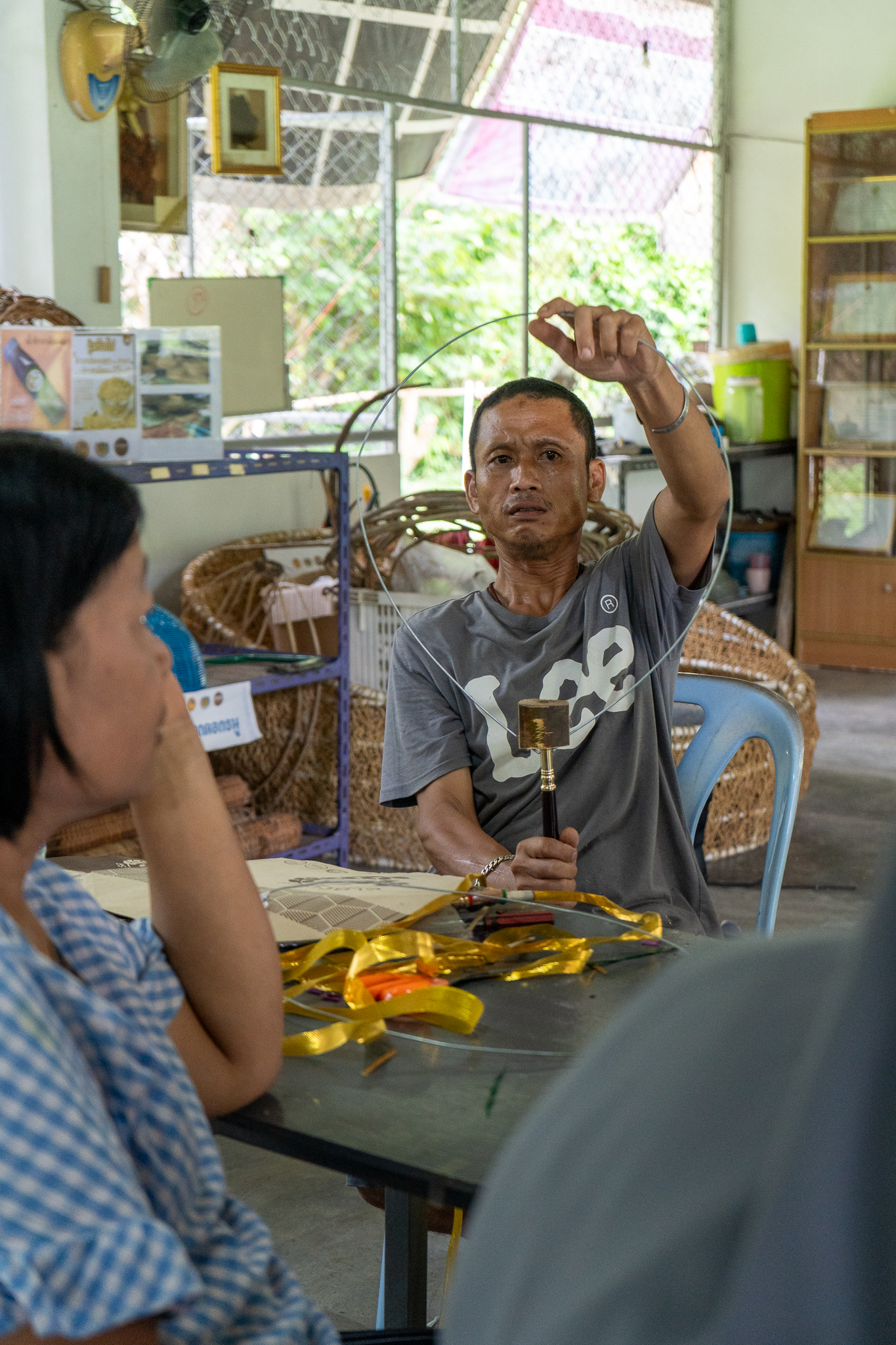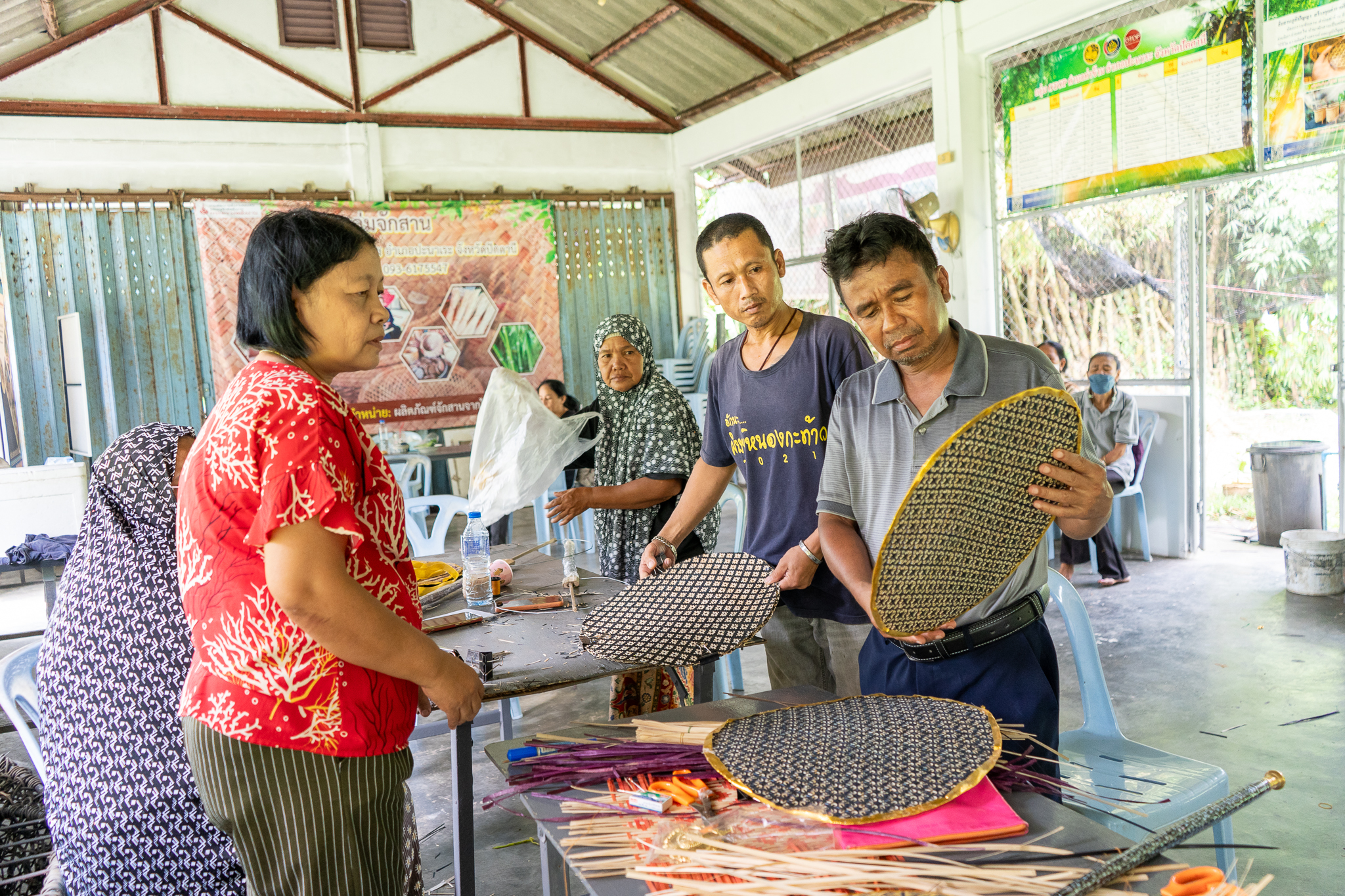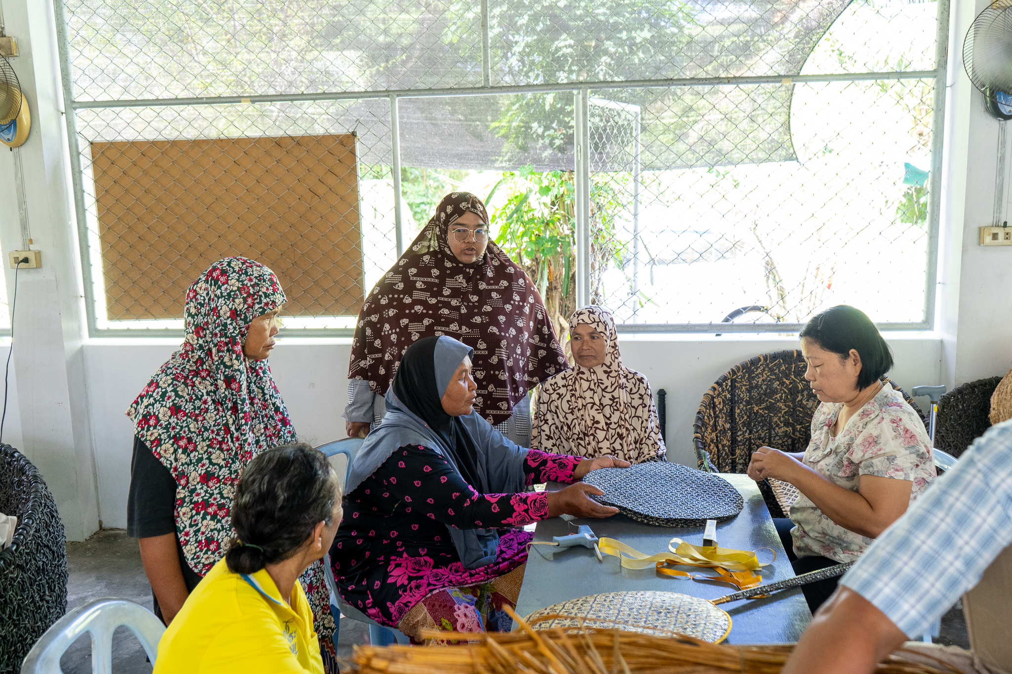 สถาบันวัฒนธรรมศึกษากัลยาณิวัฒนา มหาวิทยาลัยสงขลานครินทร์ จัดอบรมเชิงปฏิบัติการเรื่อง “การพัฒนาการแปรรูปผลิตภัณฑ์จากงานจักสานไม้ไผ่และกระจูด (ผลิตภัณฑ์ตาลปัตรพระ)” กิจกรรมการพัฒนาเศรษฐกิจเชิงสร้างสรรค์และเชิงวัฒนธรรมภายใต้โครงการวิจัยเรื่อง การพัฒนาผลิตภัณฑ์จากทุนทางวัฒนธรรมสู่อุตสาหกรรมสร้างสรรค์ เพื่อความเข้มแข็งและยั่งยืนในระบบเศรษฐกิจฐานวัฒนธรรมจังหวัดปัตตานี” ระหว่างวันที่ ๖ – ๘ พฤศจิกายน ๒๕๖๖ ณ ศูนย์การเรียนรู้จักสานบ้านทุ่ง ตำบลท่าข้าม อำเภอปะนาเระ จังหวัดปัตตานี โดยมี นางสาวสมปอง อัดอินโหม่ง ประธานกลุ่มหัตถกรรมจักรสานบ้านทุ่ง เป็นวิทยากร และกลุ่มหัตถกรรมจักรสานบ้านทุ่งร่วมกิจกรรม