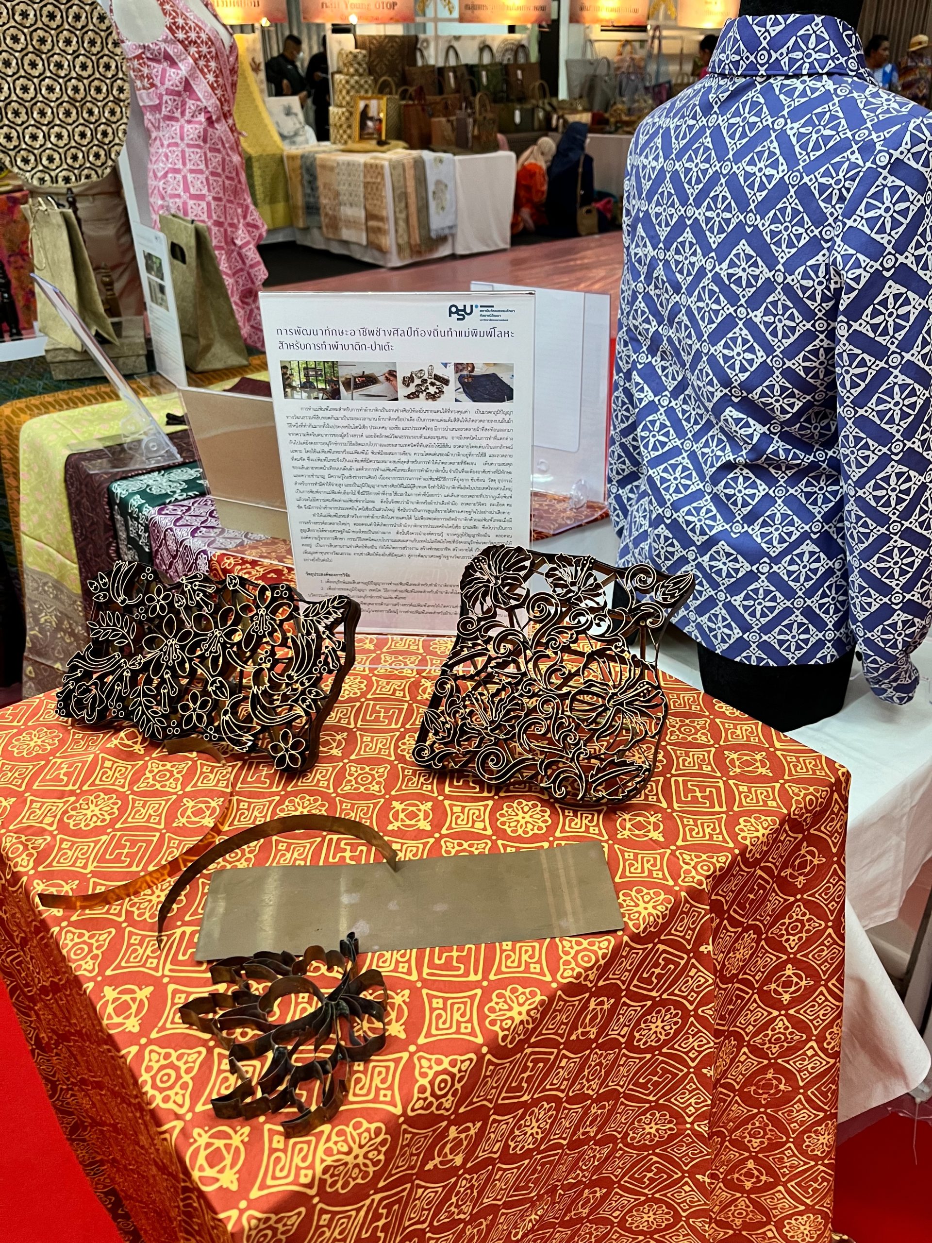 ในครั้งนี้สถาบันวัฒนธรรมศึกษากัลยาณิวัฒนา มหาวิทยาลัยสงขลานครินทร์ นำโดยผู้ช่วยศาสตราจารย์ ดร.พรปวีณ์ พุ่มเกิด ผู้อำนวยการ ได้จัดแสดงนิทรรศการผลิตภัณฑ์จากผ้าลีมาบาติก ผ้าทอจวนตานี แม่พิมพ์โลหะจากโครงการพัฒนาทักษะอาชีพการทำแม่พิมพ์โลหะสำหรับผ้าบาติก ตาลปัตร พวงมาลัย กล่องสาหร่าย ผ้าย้อมครามปัตตานี ผ้าทอเดนิม จากโครงการพัฒนาผลิตภัณฑ์สะท้อนอัตลักษณ์ทางวัฒนธรรมสู่อุตสาหกรรมสร้างสรรค์ อีกทั้งยังมีการแสดงชุดออกแบบเครื่องแต่งกายจากการประกวดออกแบบแฟชั่นเครื่องแต่งกายอีกด้วย