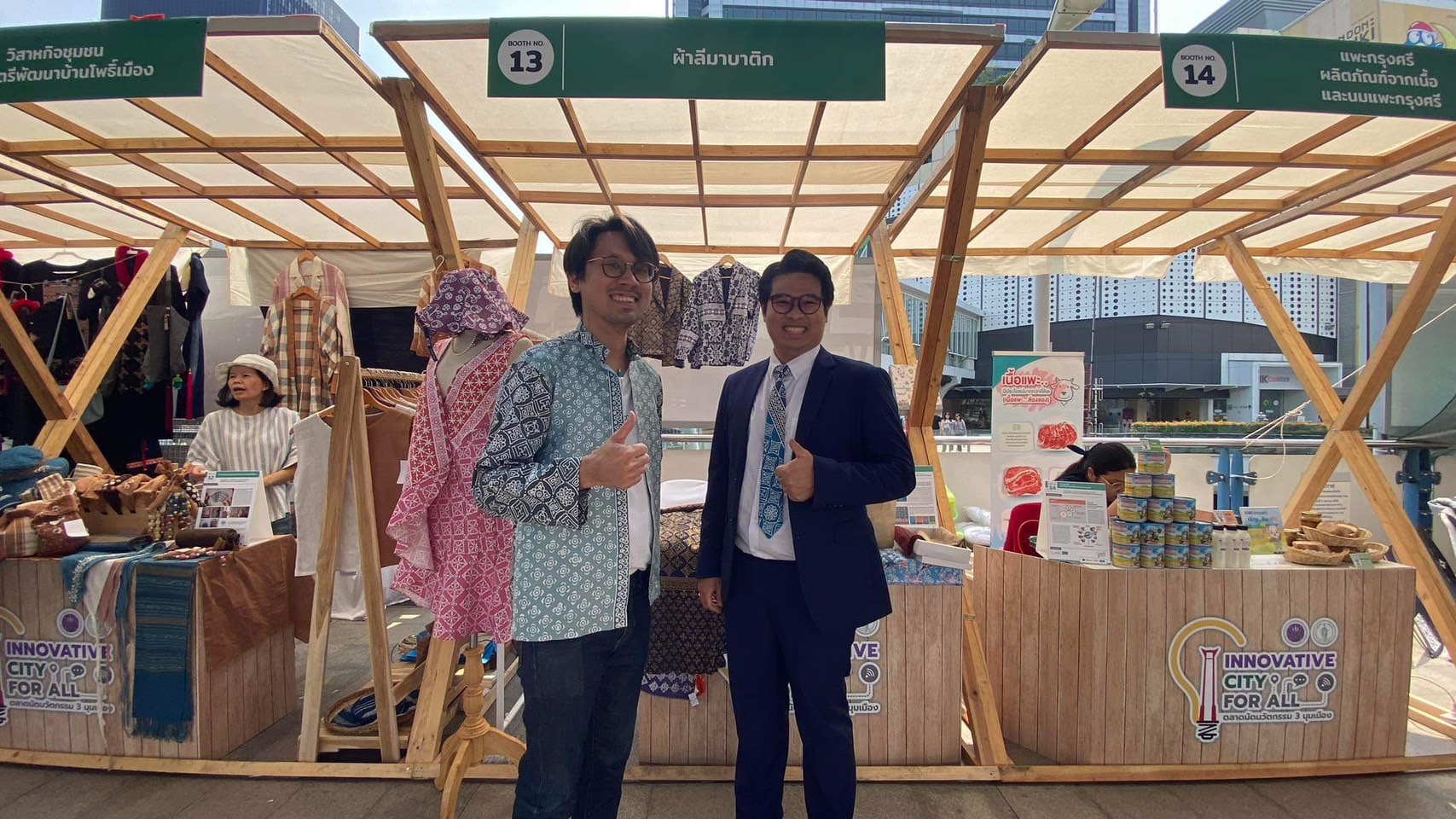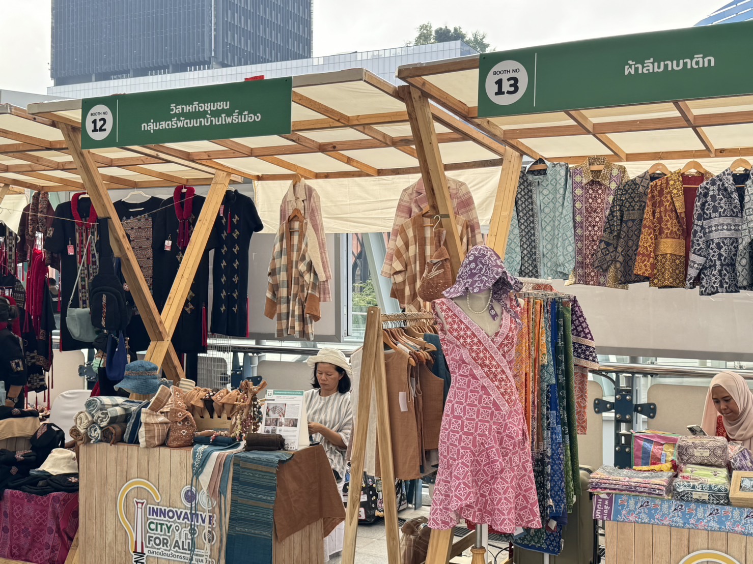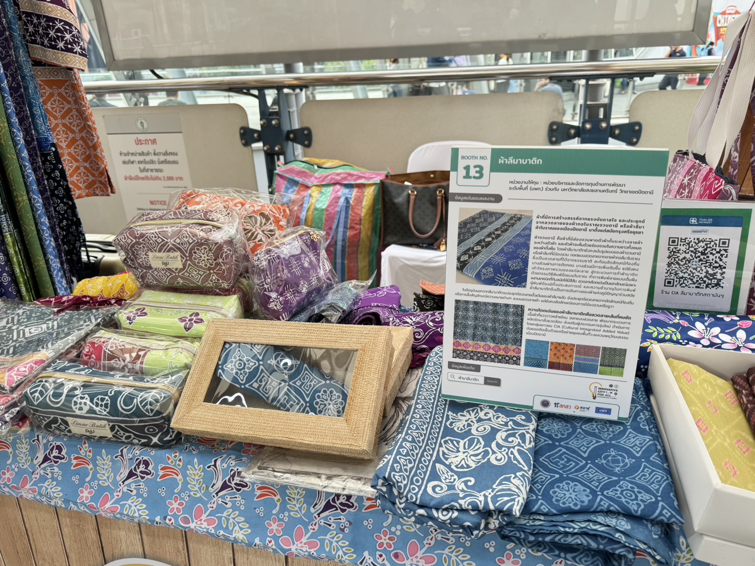 ผู้ช่วยศาสตราจารย์ ดร.พรปวีณ์ พุ่มเกิด ผู้อำนวยการฯ และบุคลากรสถาบันฯ, ผู้ประกอบการ CIA (Cultural integrated added-value) ร่วมจัดบูธนิทรรศการ “ผ้าลีมาบาติก” ในงาน “ตลาดนัดนวัตกรรม 3 มุมเมือง” ระหว่างวันที่ 1 – 3 กุมภาพันธ์ 2567 เวลา 09.00 – 16.00 น. ณ หอศิลปวัฒนธรรมแห่งกรุงเทพมหานคร และบริเวณลาน Skywalk สี่แยกปทุมวัน โดยมีวัตถุประสงค์เพื่อแสดงผลงานวิจัยและนวัตกรรมของ อว. และหน่วยงานในสังกัดให้เป็นที่ประจักษ์ต่อสังคม และสนับสนุนการนำผลงานวิจัยและนวัตกรรมเกี่ยวกับเมืองและชุมชนท้องถิ่นโดย อว. ไปใช้ให้เกิดประโยชน์อย่างเป็นรูปธรรม ในการนี้ ท่านสุชาดา แทนทรัพย์ เลขานุการรัฐมนตรีว่าการกระทรวงการอุดมศึกษา วิทยาศาสตร์ วิจัยและนวัตกรรม (อว.) และท่านผู้ช่วยศาสตราจารย์ ดร.ทวิดา กมลเวชช ท่านรองผู้ว่าราชการกรุงเทพมหานคร ได้เยี่ยมชมและเลือกซื้อผลิตภัณฑ์