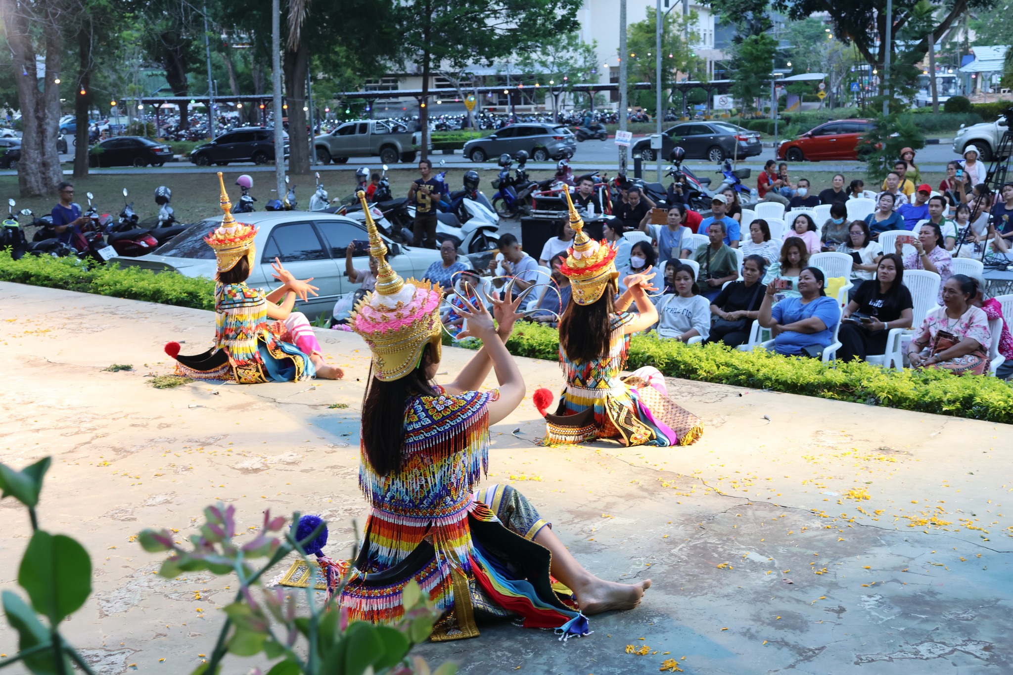 งานวิพิธทัศนา 28 กุมภาพันธ์ 2024 / By sannusee วันที่ 25 กุมภาพันธ์ 2567 ผู้ช่วยศาสตราจารย์ ดร. พรปวีณ์ พุ่มเกิด ผู้อำนวยการ พร้อมด้วยบุคลากรสถาบันฯ ร่วมจัดงานวิพิธทัศนา เพื่อเป็นการแสดงผลงานของเยาวชนในโครงการอบรมศิลปวัฒนธรรมสำหรับเยาวชน ที่มีทั้งการแสดงโขน โนรา นาฏศิลป์และดนตรีไทย อาทิ การบรรเลงดนตรีไทยเยาวชน การแสดงเพลงฟ้อนมาลัย การแสดงเพลงฟ้อนขันดอก การแสดงโนราเยาวชน การแสดงโขนชุดหนุมานจับนางเบญกาย การแสดงโขนเพลงเต่าเห่ การแสดงโขนเพลงกราวใน (ยักษ์) การแสดงโขนเพลงกราวนอก (ลิง) การแสดงเพลงรากไทย การแสดงเพลงภูษาพัสตราภรณ์ นอกจากนี้ยังมีลานกิจกรรมระบายสีภาพ การเล่นหมากขุม ลานอาหารที่เป็นการออกร้านของบุคลากร และผู้ปกครองของเยาวชน ณ ลานหน้าอาคารศูนย์ส่งเสริมศิลปะและวัฒนธรรม สถาบันวัฒนธรรมศึกษากัลยาณิวัฒนา มหาวิทยาลัยสงขลานครินทร์ วิทยาเขตหาดใหญ่ Post Views: 25