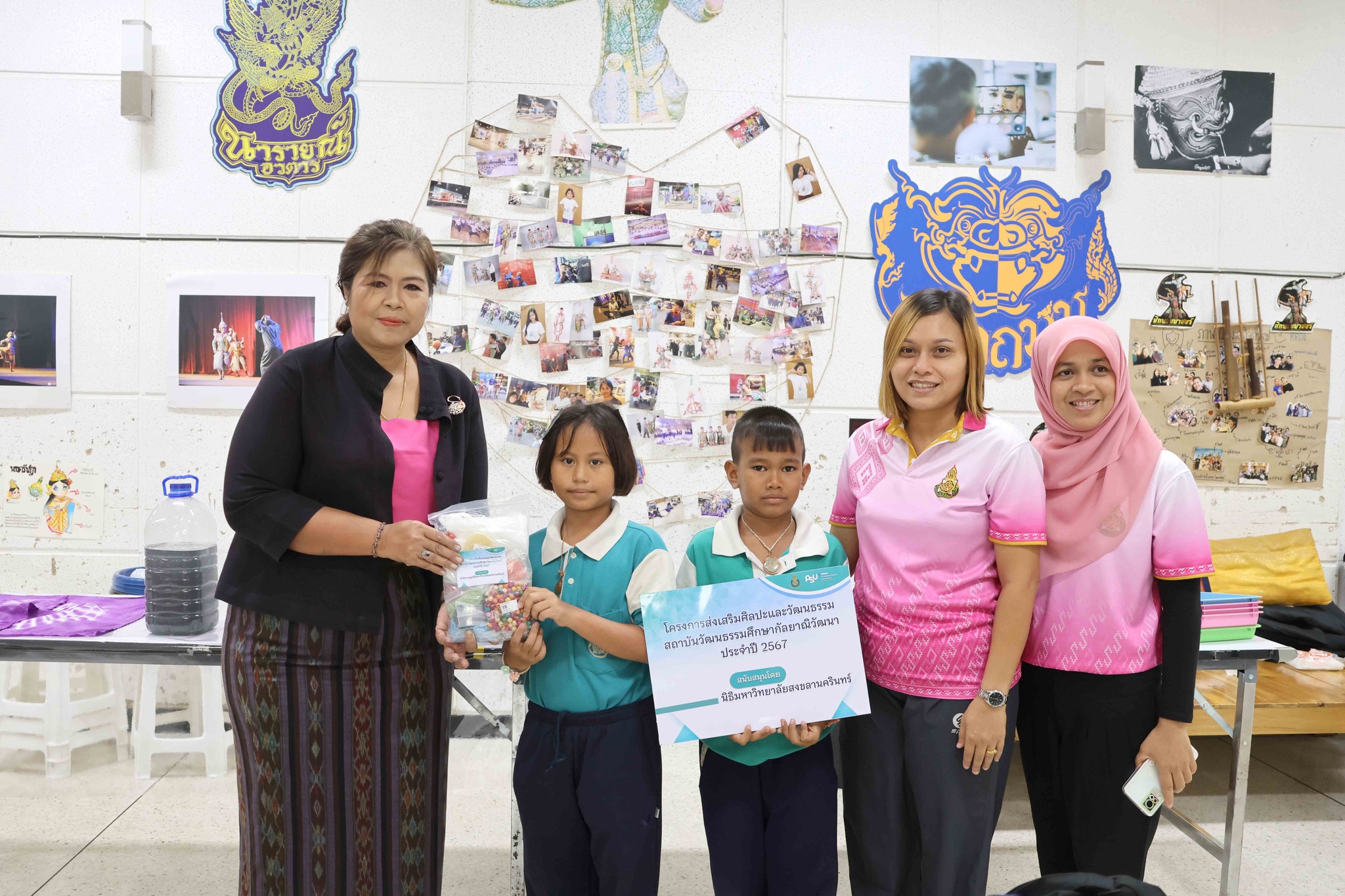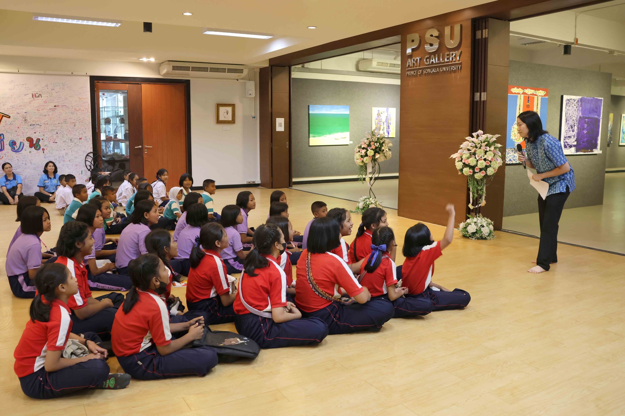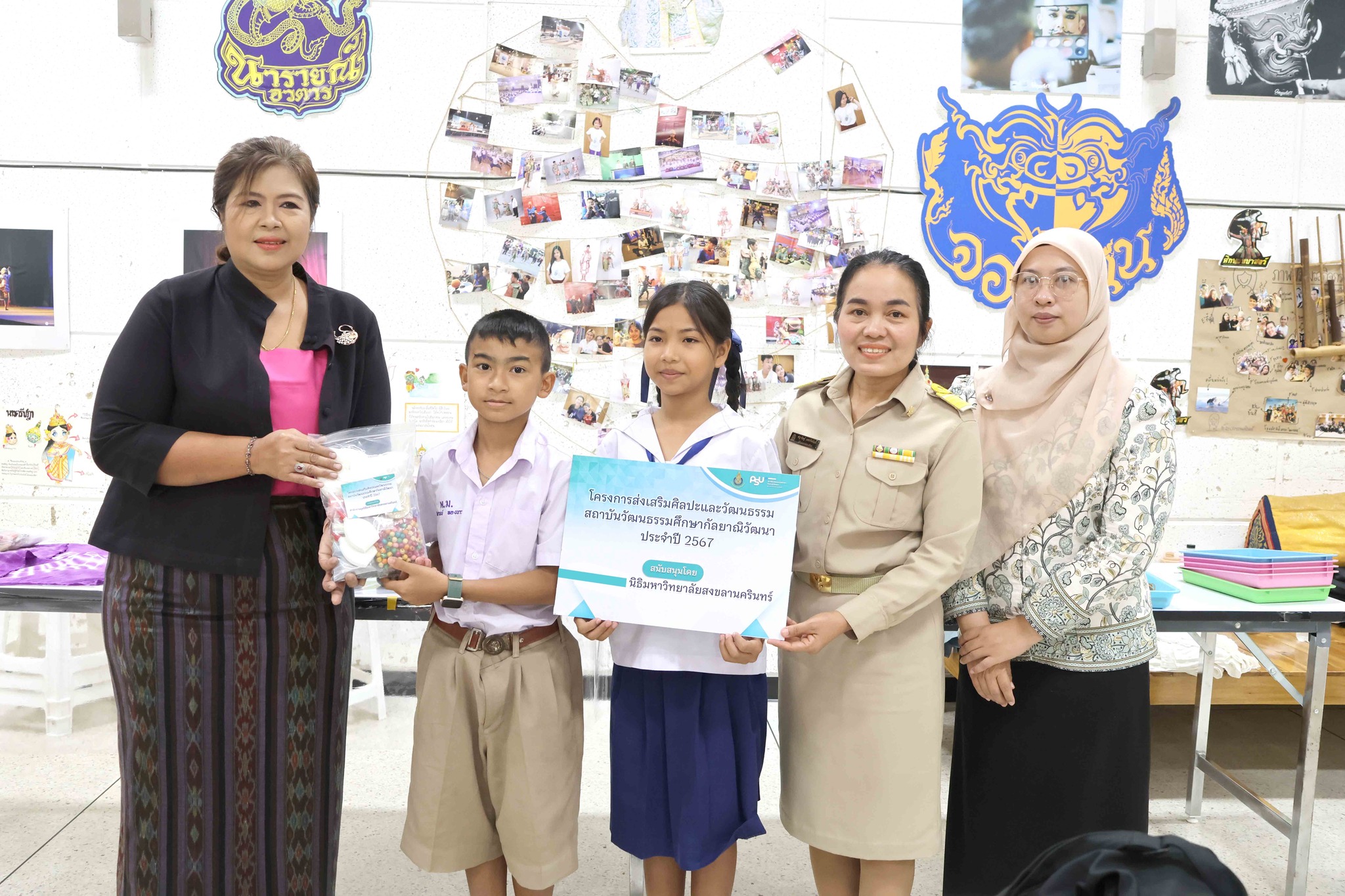 6 สิงหาคม 2567 ผู้ช่วยศาสตราจารย์ ดร.พรปวีณ์ พุ่มเกิด ผู้อำนวยการพร้อมด้วยบุคลากรสถาบันฯ จัดโครงการส่งเสริมศิลปะและวัฒนธรรม สถาบันวัฒนธรรมศึกษากัลยาณิวัฒนา ประจำปี 2567 สนับสนุนโดยมูลนิธิมหาวิทยาลัยสงขลานครินทร์ โดยมีคณะครูและนักเรียนจากโรงเรียนบ้านโปะหมอ (พรหมเทพราษฎร์บำรุง) โรงเรียนบ้านควนกบ โรงเรียนวัดโพธิธรรมารามและโรงเรียนวัดนารังนก ร่วมเข้าชมแหล่งเรียนรู้ PSU Art Gallery และพิพิธภัณฑ์ผ้าพื้นถิ่นภาคใต้ และร่วมเรียนรู้ฐานกิจกรรมการผ้ามัดย้อมแบบชิโบริ การร้อยลูกปัดโนรา ณ อาคารศูนย์ส่งเสริมศิลปะและวัฒนธรรม สถาบันวัฒนธรรมศึกษากัลยาณิวัฒนา มหาวิทยาลัยสงขลานครินทร์ วิทยาเขตหาดใหญ่