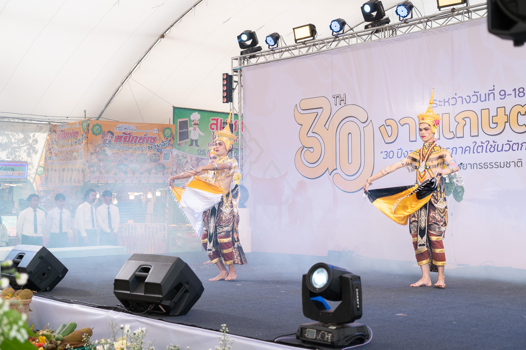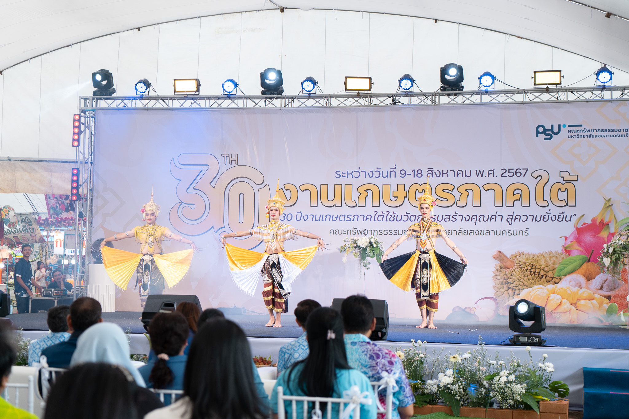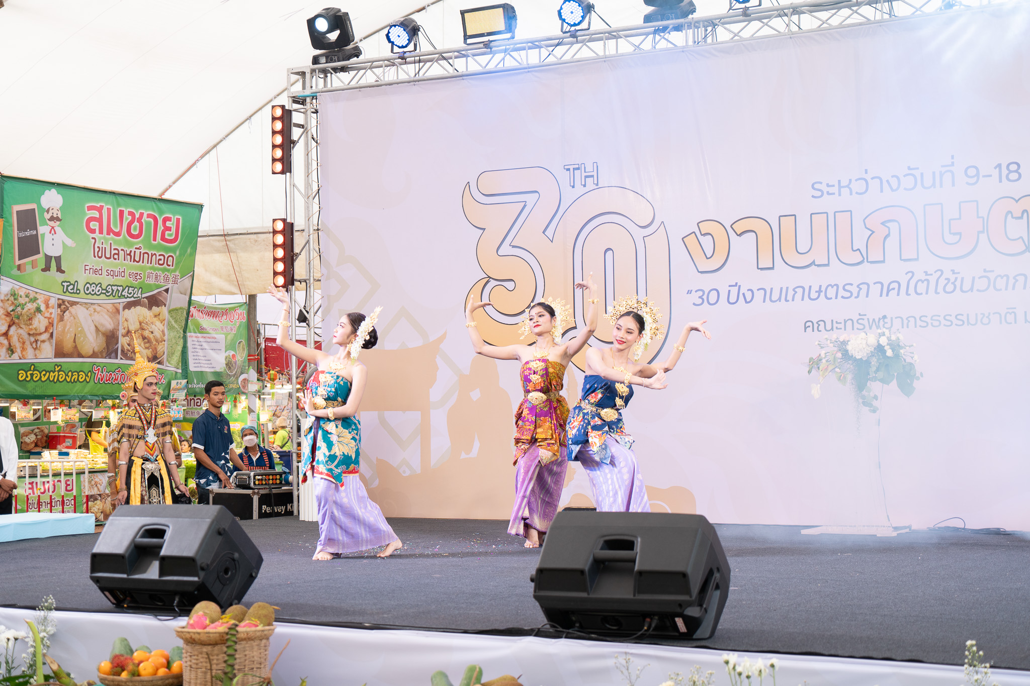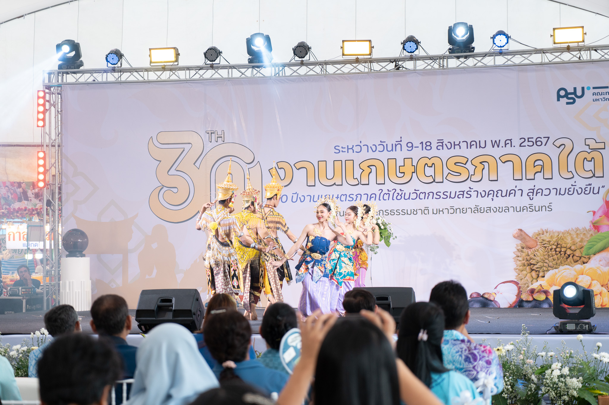 การแสดงชุด “นาฏยโนรา บุหงานารี” ร่วมแสดงในพิธีเปิดงานเกษตรภาคใต้ ครั้งที่ 30 ภายใต้แนวคิด “ 30 ปี งานเกษตรภาคใต้ ใช้นวัตกรรมสร้างคุณค่า สู่ความยั่งยืน” 14 สิงหาคม 2024 / By sannusee วันที่ 11 สิงหาคม 2567 สถาบันวัฒนธรรมศึกษากัลยาณิวัฒนา โดย นางสาวสิริมา ยืนยง บุคลากรสถาบันฯ นำการแสดงชุด “นาฏยโนรา บุหงานารี” ร่วมแสดงในพิธีเปิดงานเกษตรภาคใต้ ครั้งที่ 30 ภายใต้แนวคิด “30 ปี งานเกษตรภาคใต้ ใช้นวัตกรรมสร้างคุณค่า สู่ความยั่งยืน” ณ คณะทรัพยากรธรรมชาติ มหาวิทยาลัยสงขลานครินทร์ วิทยาเขตหาดใหญ่.ชุด นาฏยโนรา บุหงานารีเป็นการแสดงที่สร้างสรรค์ขึ้นใหม่ เพื่อบอกเล่าเรื่องราวเกี่ยวกับพืชพันธุ์ไม้ในภาคใต้ เนื้อเพลงมีการบรรยายถึงดอกไม้ประจำแต่ละจังหวัด ผสมผสานกับดนตรีและศิลปการแสดงพื้นบ้านโนรา ซึ่งเป็นเอกลักษณ์อันงดงามของชาวใต้ Post Views: 33