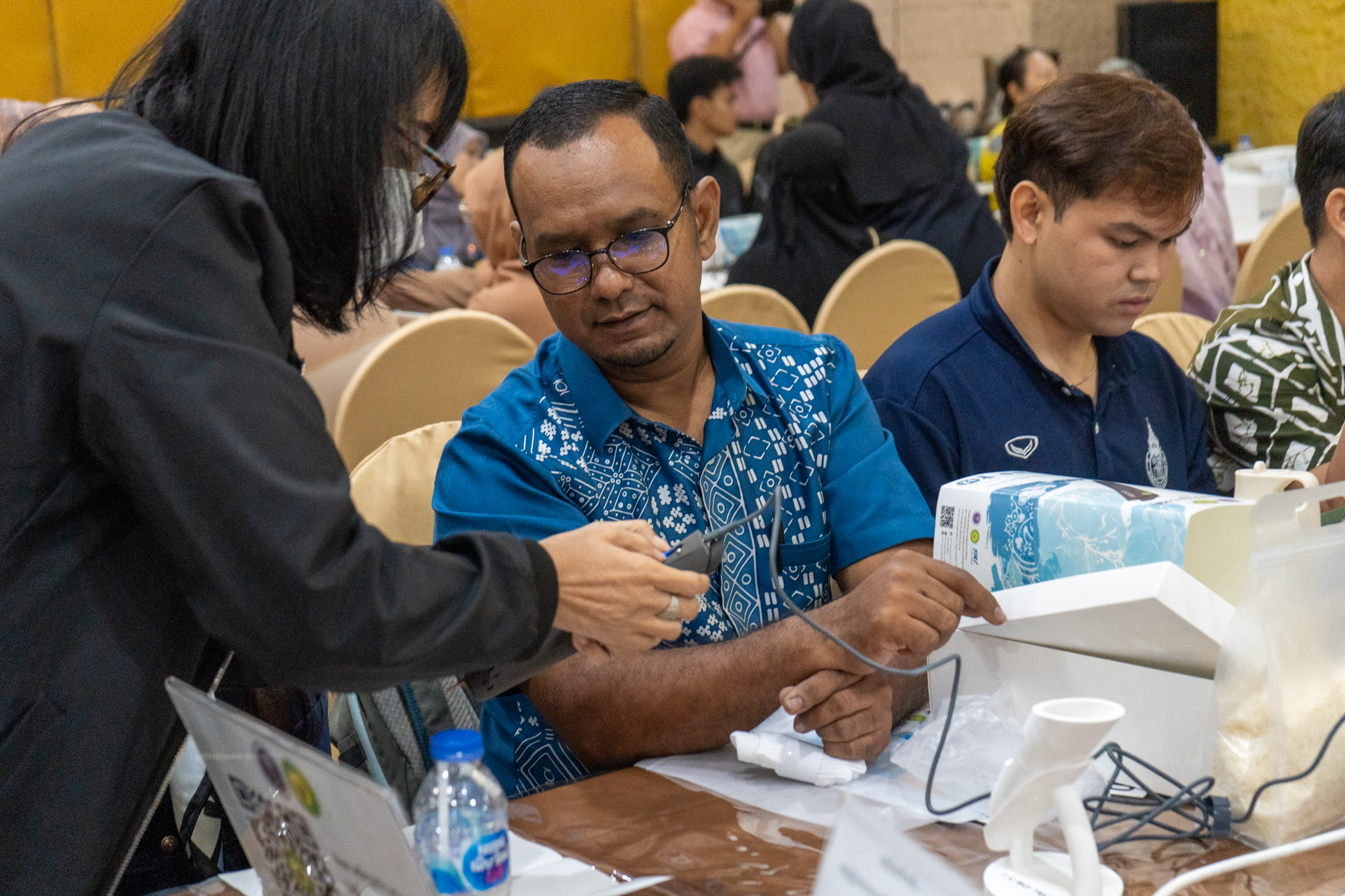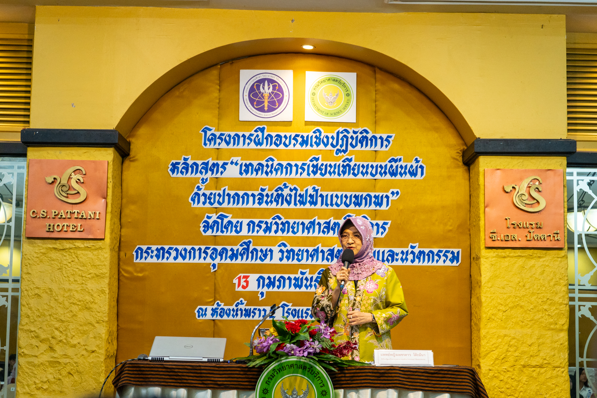 13 กุมภาพันธ์ 2568 นางสาวนราวดี โลหะจินดา และ นายนูรดีน เลิศบุรุษ นักวิชาการสถาบันวัฒนธรรมศึกษากัลยาณิวัฒนา ร่วมอบรมเชิงปฏิบัติการ โครงการฝึกอบรมเชิงปฏิบัติการ หลักสูตร เทคนิคการเขียนเทียนบนผืนผ้าด้วยปากกาจันติ้งไฟฟ้าแบบพกพา จัดโดยกรมวิทยาศาสตร์บริการ กระทรวงการอุดมศึกษา วิทยาศาสตร์ วิจัยและนวัตกรรม ณ โรงแรม ซี เอส ปัตตานี จังหวัดปัตตานี ทั้งนี้ภายในงานมีผู้เข้าร่วมการอบรมเชิงปฏิบัติการ ประกอบด้วยกลุ่มผู้ประกอบการที่ผลิตผ้าบาติกในพื้นที่จังหวัดปัตตานี และยะลา ซึ่งเป็นผู้ที่มีความเชี่ยวชาญ ในการผลิตผ้าบาติกอีกด้วย