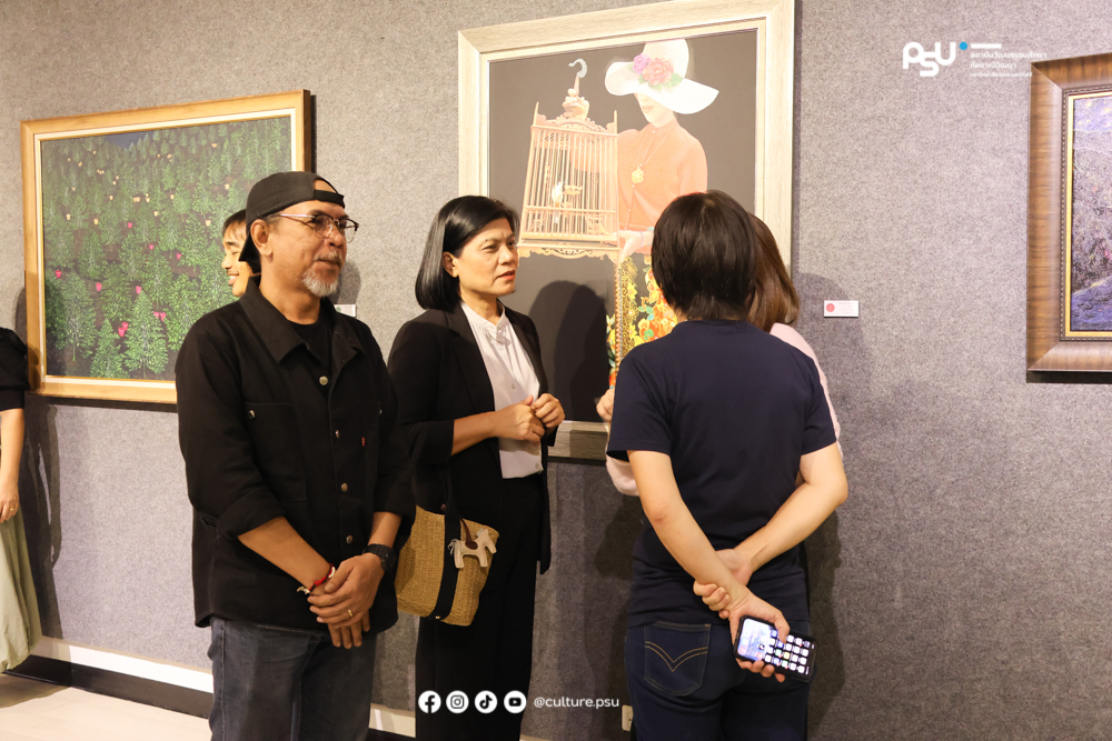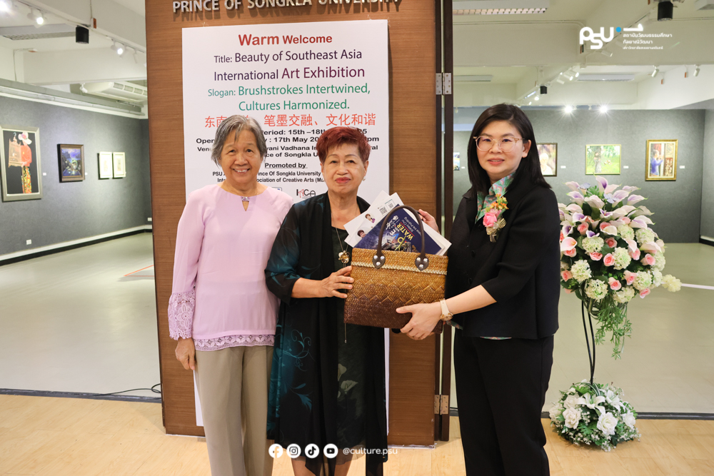 เมื่อวันที่ 17 พฤษภาคม 2568 สถาบันวัฒนธรรมศึกษากัลยาณิวัฒนา มหาวิทยาลัยสงขลานครินทร์ ร่วมกับ สมาคมศิลปินมาเลเซีย และ สมาคมศิลปินหญิงมาเลเซีย ได้จัดพิธีเปิดนิทรรศการ Beauty of Southeast Asia International Art Exhibition “Brushstrokes Intertwined, Cultures Harmonized” โดยมี ดร.ชนกิตติ์ ธนะสุข ผู้อำนวยการสถาบันวัฒนธรรมศึกษากัลยาณิวัฒนา กล่าวต้อนรับแขกผู้มีเกียรติ ศิลปินทั้ง 45 ท่าน และรองศาสตราจารย์ ดร. ทพญ. สุภาวดี เนาว์รุ่งโรจน์ ผู้ช่วยอธิการบดีฝ่ายพัฒนานักศึกษา ประธานในพิธี นอกจากนี้ยังได้รับเกียรติจาก Mr. Robert Cheah ที่ปรึกษาการจัดนิทรรศการ และ Dato’ Oon Pheng Khoon, JP ที่ปรึกษา International Association of Creative Arts (Malaysia) – IACA และ Malaysian Artists Society (PPM) ร่วมกล่าวถึงความเป็นมาของการจัดนิทรรศการในครั้งนี้ด้วย