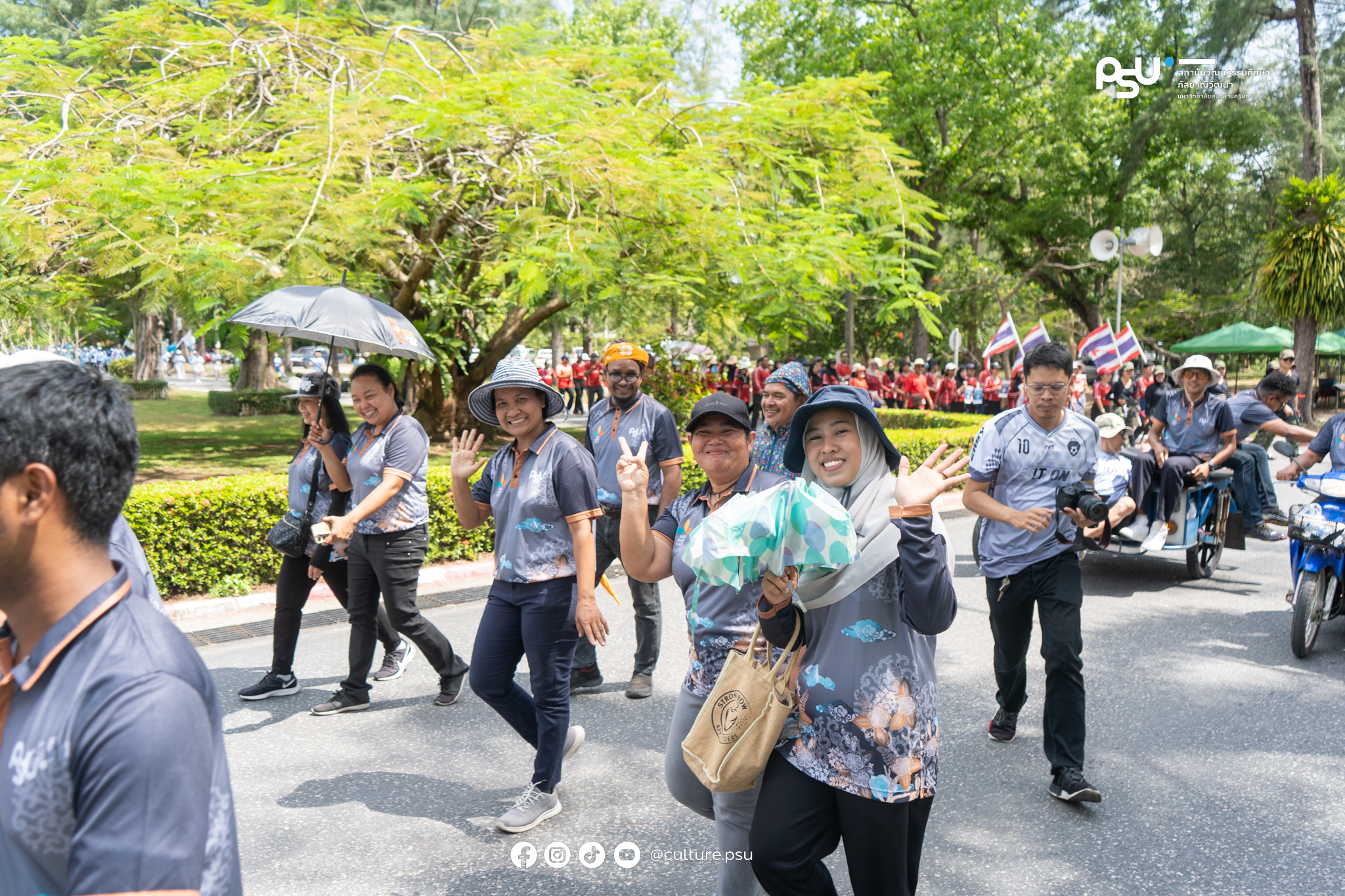 ดร.ชนะกิตติ์ ธนะสุข ผู้อำนวยการสถาบันวัฒนธรรมศึกษากัลยาณิวัฒนา พร้อมด้วยบุคลากรของสถาบันฯ เข้าร่วมเดินพาเหรดในพิธีเปิดกิจกรรมกีฬาและวัฒนธรรมเพื่อสร้างความสัมพันธ์ระหว่างหน่วยงาน ในงาน “กีฬา 5 ประสาน สานสัมพันธ์อย่างยั่งยืน” ประจำปี 2568 จัดโดยสโมสรบุคลากรมหาวิทยาลัยสงขลานครินทร์ วิทยาเขตปัตตานี ระหว่างวันที่ 1–7 สิงหาคม 2568
