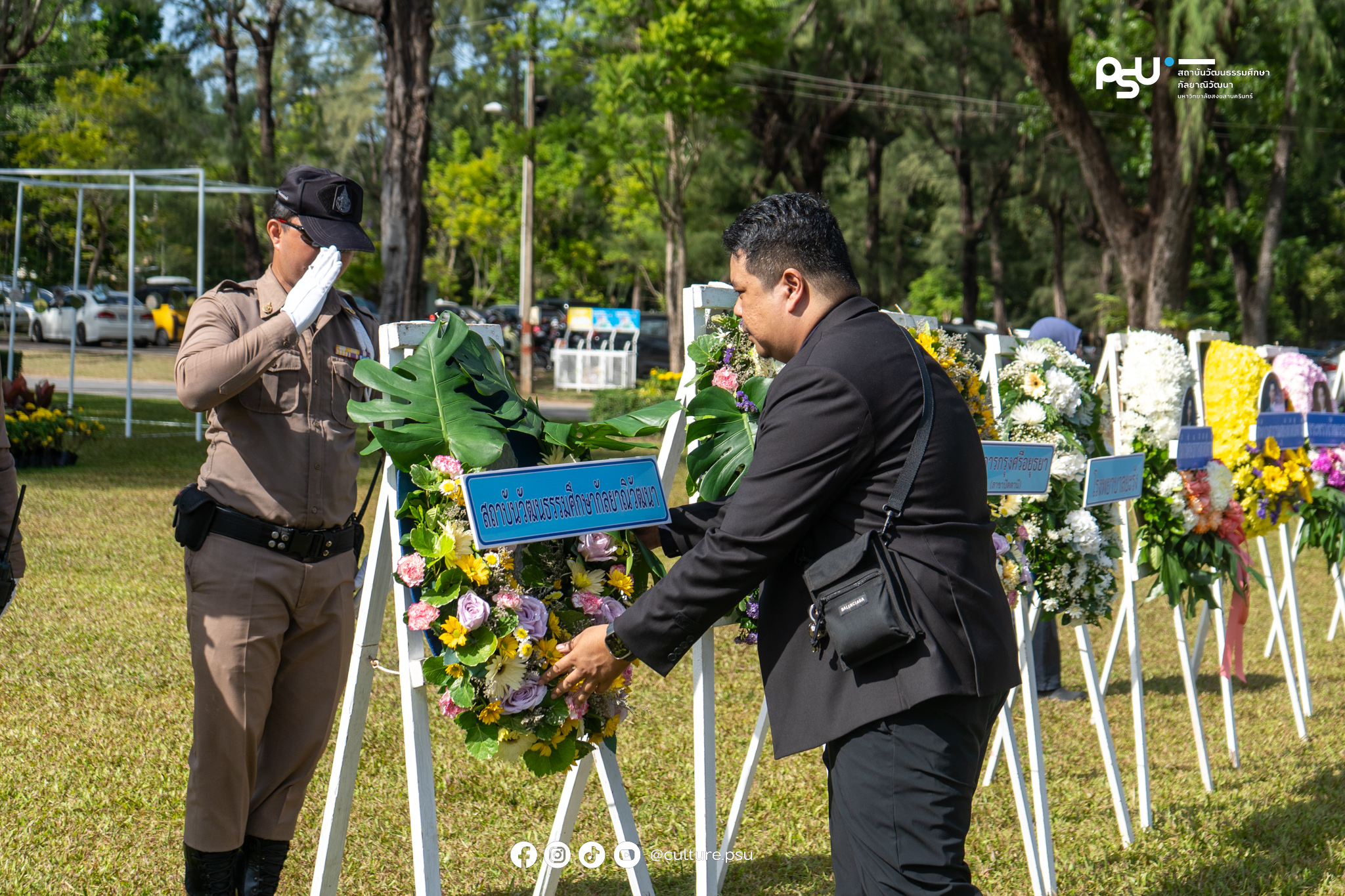 สถาบันวัฒนธรรมศึกษากัลยาณิวัฒนา มหาวิทยาลัยสงขลานครินทร์ โดย ดร.ชนกิตติ์ ธนะสุข ผู้อำนวยการ พร้อมด้วย ดร.ปิติ มณีเนตร รองผู้อำนวยการ และบุคลากรสถาบันฯ ร่วมกิจกรรมทำบุญและวางพวงมาลากิจกรรมเนื่องใน “วันมหิดล” และวันประโยชน์ของเพื่อนมนุษย์เป็นกิจที่หนึ่ง” เพื่อร่วมน้อมรำลึกถึงพระมหากรุณาธิคุณ สมเด็จพระมหิตลาธิเบศร อดุลยเดชวิกรม พระบรมราชชนก พระบิดาแห่งการแพทย์แผนปัจจุบันและการสาธารณสุขของไทย ณ ลานพระราชานุสาวรีย์ สมเด็จพระมหิตลาธิเบศร อดุลยเดชวิกรม พระบรมราชชนก มหาวิทยาลัยสงขลานครินทร์ วิทยาเขตปัตตานี