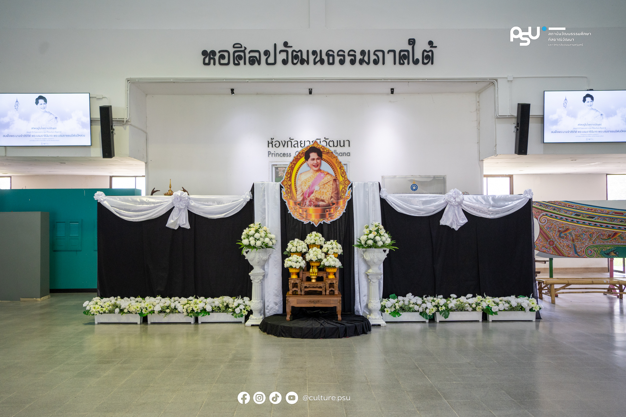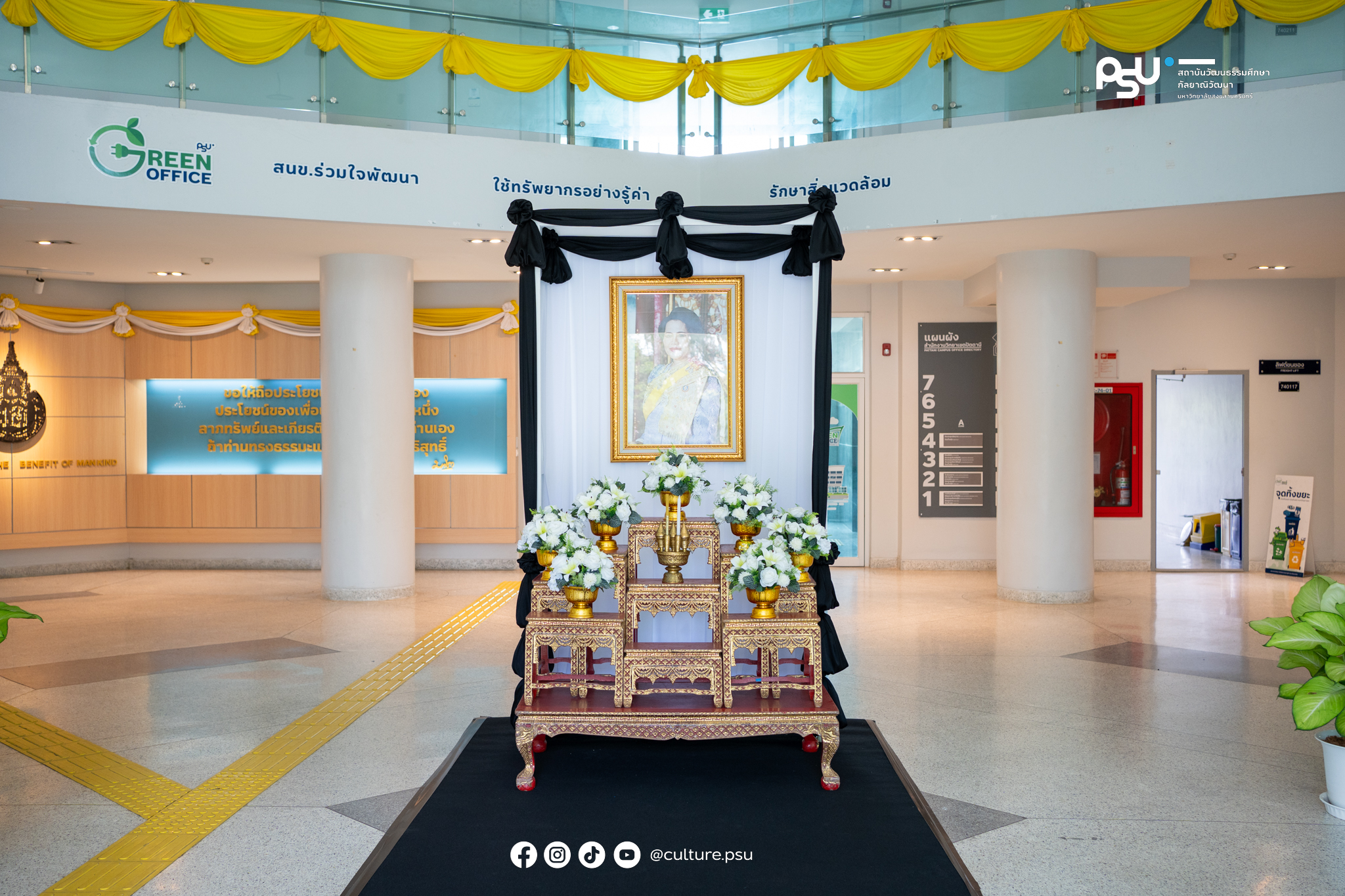 สถาบันวัฒนธรรมศึกษากัลยาณิวัฒนา มหาวิทยาลัยสงขลานครินทร์ จัดตั้งโต๊ะหมู่ประดิษฐานพระฉายาลักษณ์และเครื่องราชสักการะ ณ อาคารหอศิลปวัฒนธรรมภาคใต้ มหาวิทยาลัยสงขลานครินทร์ วิทยาเขตปัตตานี เพื่อรำลึกและน้อมถวายอาลัยในพระมหากรุณาธิคุณ สมเด็จพระนางเจ้าสิริกิติ์ พระบรมราชินีนาถ พระบรมราชชนนีพันปีหลวง