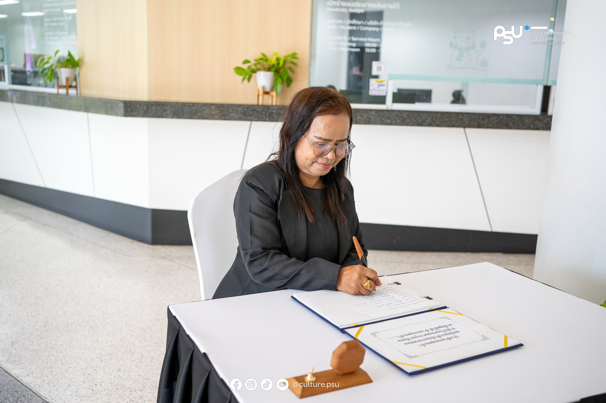 ในโอกาสนี้ ดร.ชนกิตติ์ ธนะสุข ผู้อำนวยการ พร้อมด้วยรองผู้อำนวยการ และบุคลากรสถาบันฯ ร่วมลงนามถวายอาลัยหน้าพระฉายาลักษณ์ สมเด็จพระนางเจ้าสิริกิติ์ พระบรมราชินีนาถ พระบรมราชชนนีพันปีหลวง น้อมสำนึกในพระมหากรุณาธิคุณอันหาที่สุดมิได้ ผู้ทรงปฏิบัติพระราชกรณียกิจอันทรงคุณูปการนานัปการ เพื่อประโยชน์สุขของปวงชนชาวไทย ณ สำนักงานวิทยาเขตปัตตานี ซึ่งมหาวิทยาลัยสงขลานครินทร์ วิทยาเขตปัตตานี ขอเชิญพสกนิกรทุกท่านร่วมลงนามถวายอาลัย ตั้งแต่บัดนี้เป็นต้นไป
