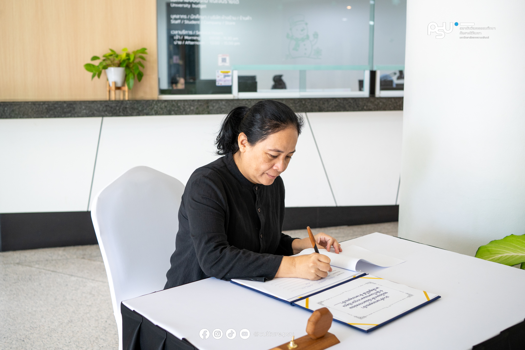 ในโอกาสนี้ ดร.ชนกิตติ์ ธนะสุข ผู้อำนวยการ พร้อมด้วยรองผู้อำนวยการ และบุคลากรสถาบันฯ ร่วมลงนามถวายอาลัยหน้าพระฉายาลักษณ์ สมเด็จพระนางเจ้าสิริกิติ์ พระบรมราชินีนาถ พระบรมราชชนนีพันปีหลวง น้อมสำนึกในพระมหากรุณาธิคุณอันหาที่สุดมิได้ ผู้ทรงปฏิบัติพระราชกรณียกิจอันทรงคุณูปการนานัปการ เพื่อประโยชน์สุขของปวงชนชาวไทย ณ สำนักงานวิทยาเขตปัตตานี ซึ่งมหาวิทยาลัยสงขลานครินทร์ วิทยาเขตปัตตานี ขอเชิญพสกนิกรทุกท่านร่วมลงนามถวายอาลัย ตั้งแต่บัดนี้เป็นต้นไป