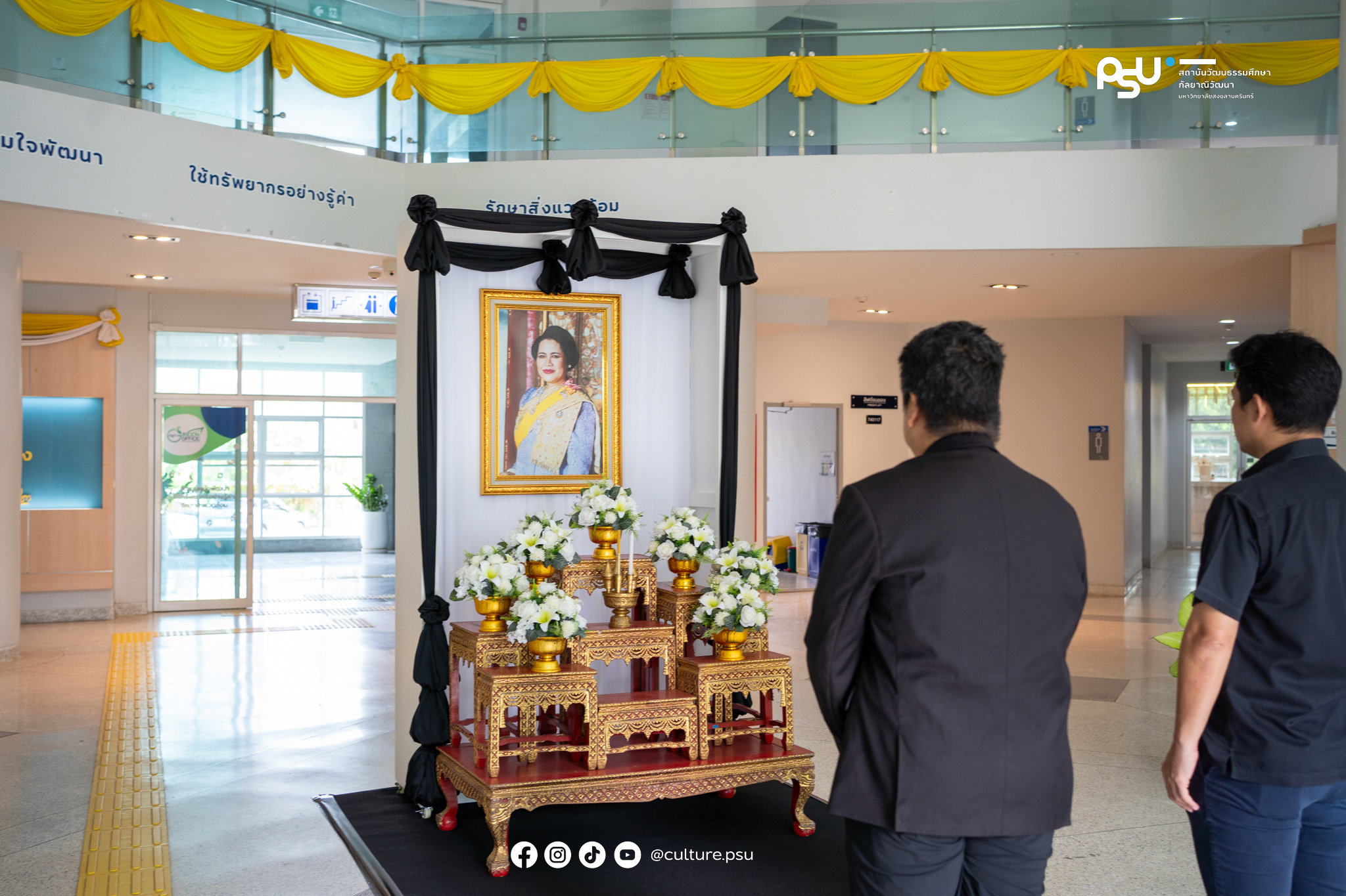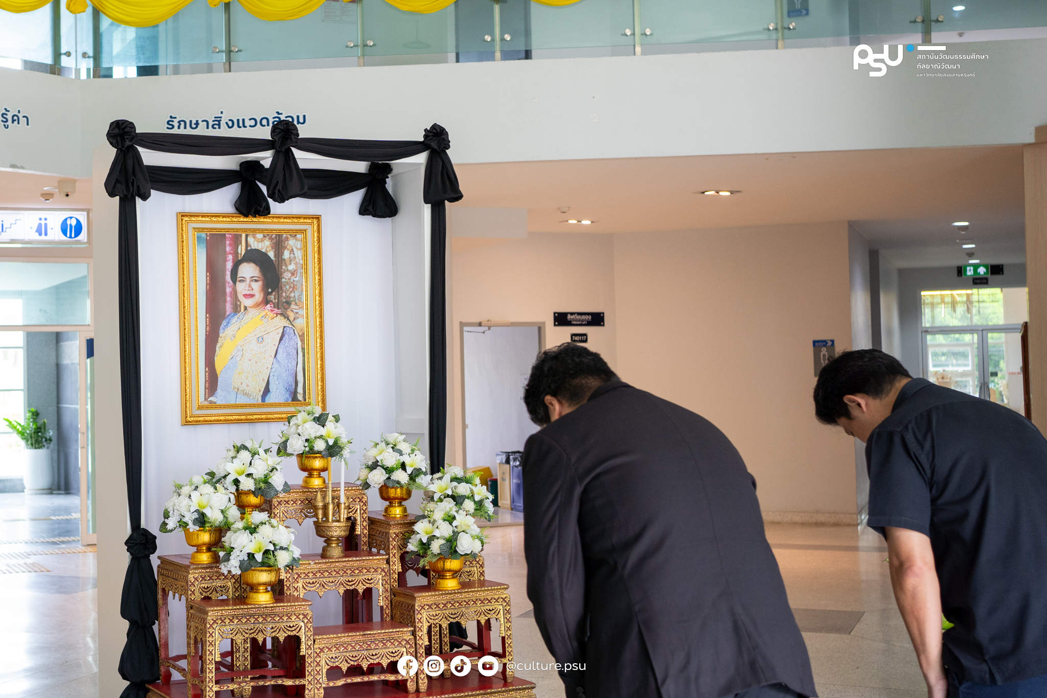 สถาบันวัฒนธรรมศึกษากัลยาณิวัฒนา มหาวิทยาลัยสงขลานครินทร์ จัดตั้งโต๊ะหมู่ประดิษฐานพระฉายาลักษณ์และเครื่องราชสักการะ ณ อาคารหอศิลปวัฒนธรรมภาคใต้ มหาวิทยาลัยสงขลานครินทร์ วิทยาเขตปัตตานี เพื่อรำลึกและน้อมถวายอาลัยในพระมหากรุณาธิคุณ สมเด็จพระนางเจ้าสิริกิติ์ พระบรมราชินีนาถ พระบรมราชชนนีพันปีหลวง