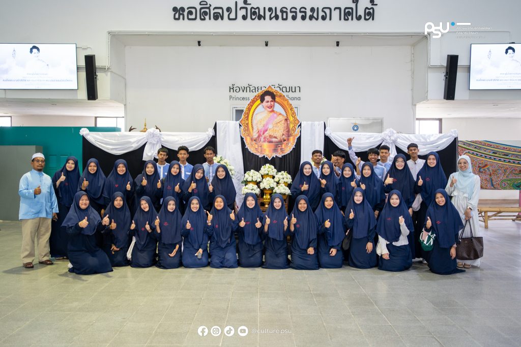 สถาบันวัฒนธรรมศึกษากัลยาณิวัฒนา ต้อนรับ คุณครูและน้องๆ จาก โรงเรียนสมบูรณ์ศาสน์ อ.ยะหา จ.ยะลา เยี่ยมชมแหล่งเรียนรู้ศิลปะและวัฒนธรรมชายแดนใต้ ณ หอศิลปวัฒนธรรมภาคใต้ พร้อมร่วมชมนิทรรศการ เหรียญตรา ธนบัตรโบราณ และเครื่องถ้วย ภายใน พิพิธภัณฑ์พระทพญาณโมลี สถาบันวัฒนธรรมศึกษากัลยาณิวัฒนา มหาวิทยาลัยสงขลานครินทร์ วิทยาเขตปัตตานี