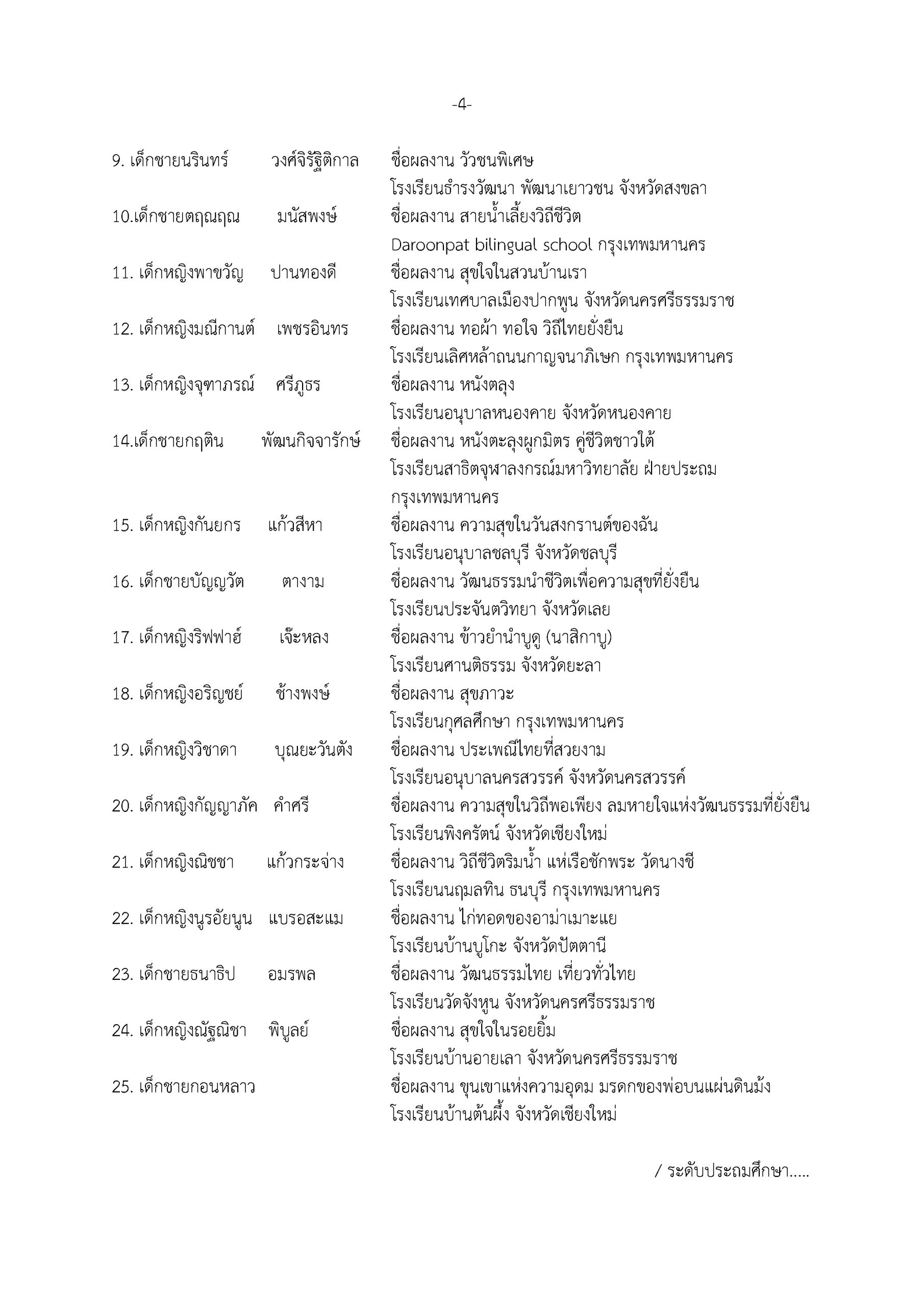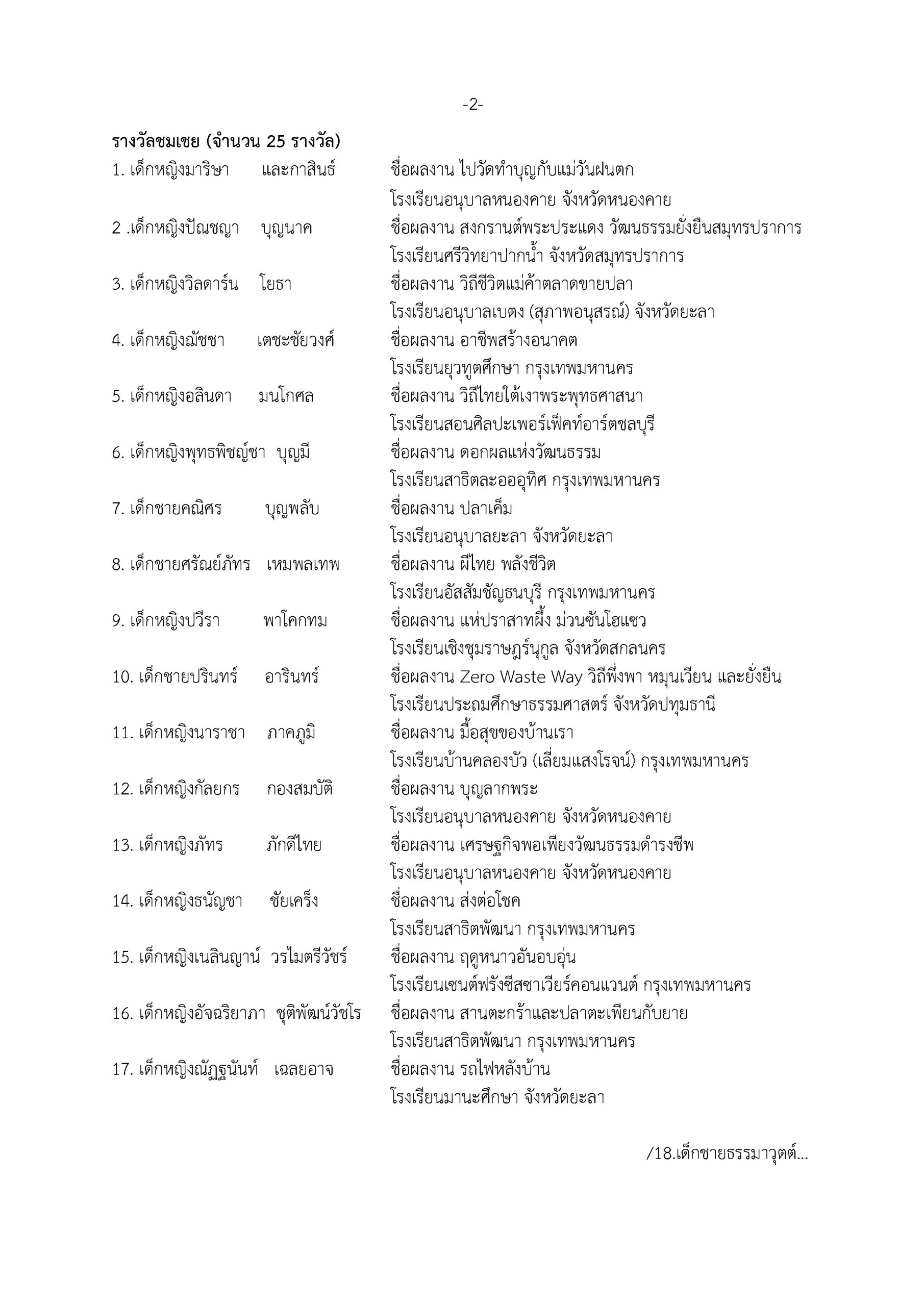 ในปีนี้ คณะกรรมการตัดสินได้มีมติ เพิ่มจำนวนรางวัลชมเชย และ เพิ่มจำนวนผลงานที่ได้รับการคัดเลือกเข้าร่วมแสดง เพื่อสะท้อนถึงศักยภาพ ความตั้งใจ และพลังสร้างสรรค์ของน้อง ๆ ทุกคนอย่างแท้จริง