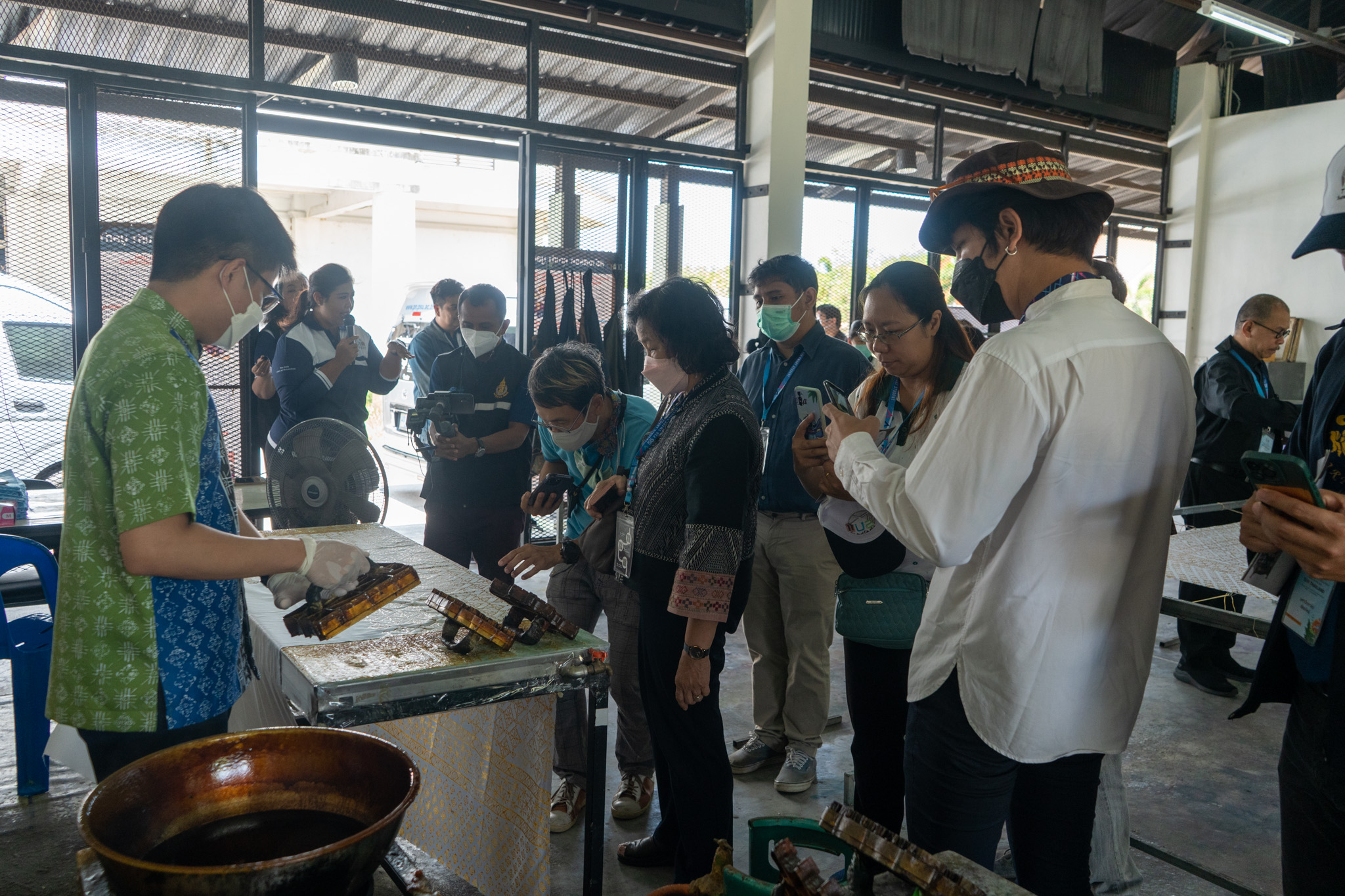 ผู้ช่วยศาสตราจารย์ ดร.พรปวีณ์ พุ่มเกิด พร้อม ดร.ชนะกิตติ์ ธนะสุข รองผู้อำนวยการ และบุคลากรสถาบันฯ ร่วมต้อนรับเครือข่ายมหาวิทยาลัยยั่งยืนแห่งประเทศไทย ในการประชุมเครือข่ายมหาวิทยาลัยยั่งยืนแห่งประเทศไทย (SUN Thailand) สัญจร ครั้งที่ 1 ประจำปี 2566 ศึกษาดูงานและเยี่ยมชมสาธิตการทำผ้าลีมาบาติก การทำแม่พิมพ์โลหะสำหรับผ้าติกปาเต๊ะ และเลือกซื้อสินค้าจากผ้าลีมาบาติก ณ ศูนย์เรียนรู้หัตถศิลป์ สถาบันวัฒนธรรมศึกษากัลยาณิวัฒนา มหาวิทยาลัยสงขลานครินทร์ วิทยาเขตปัตตานี