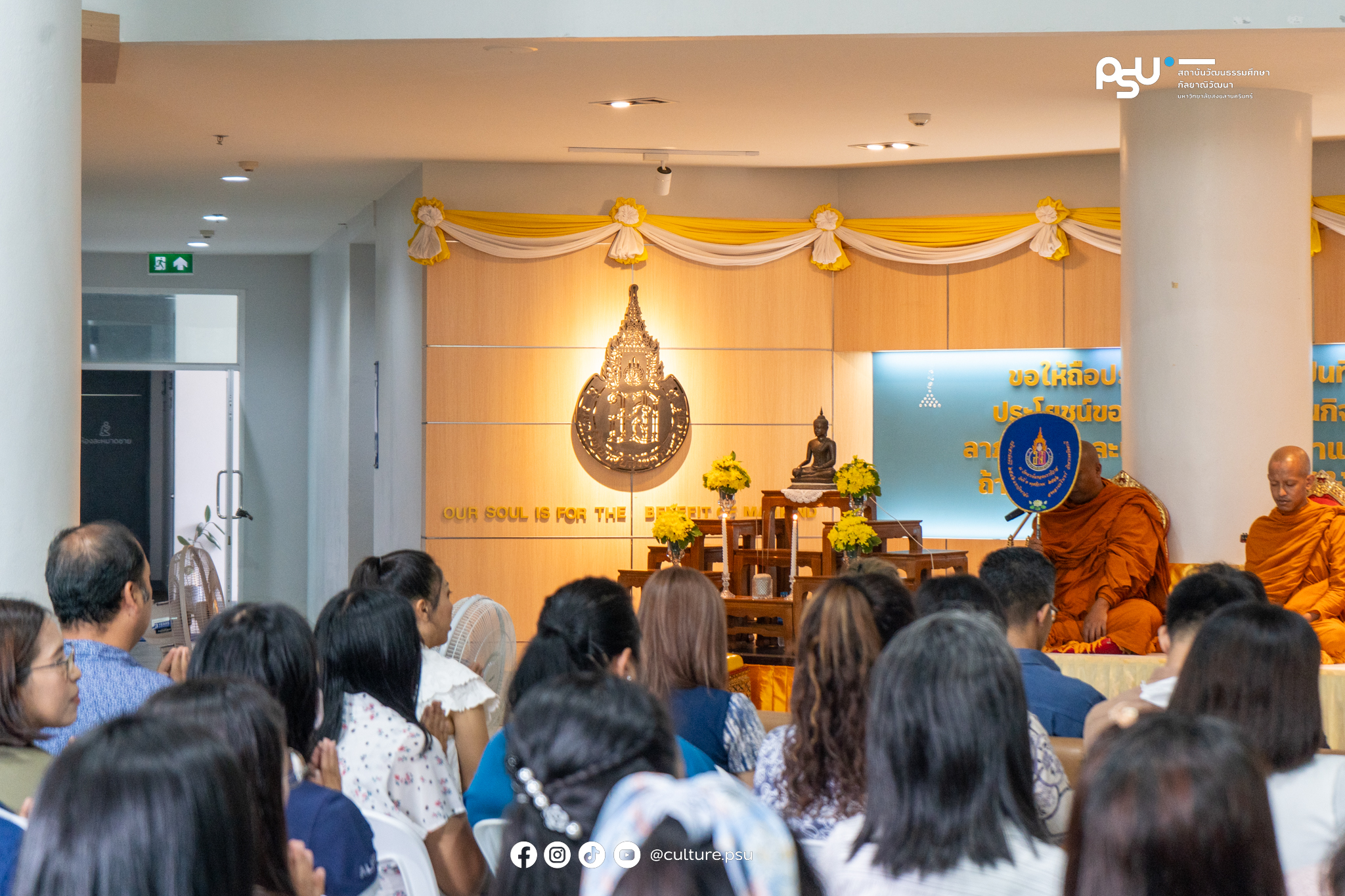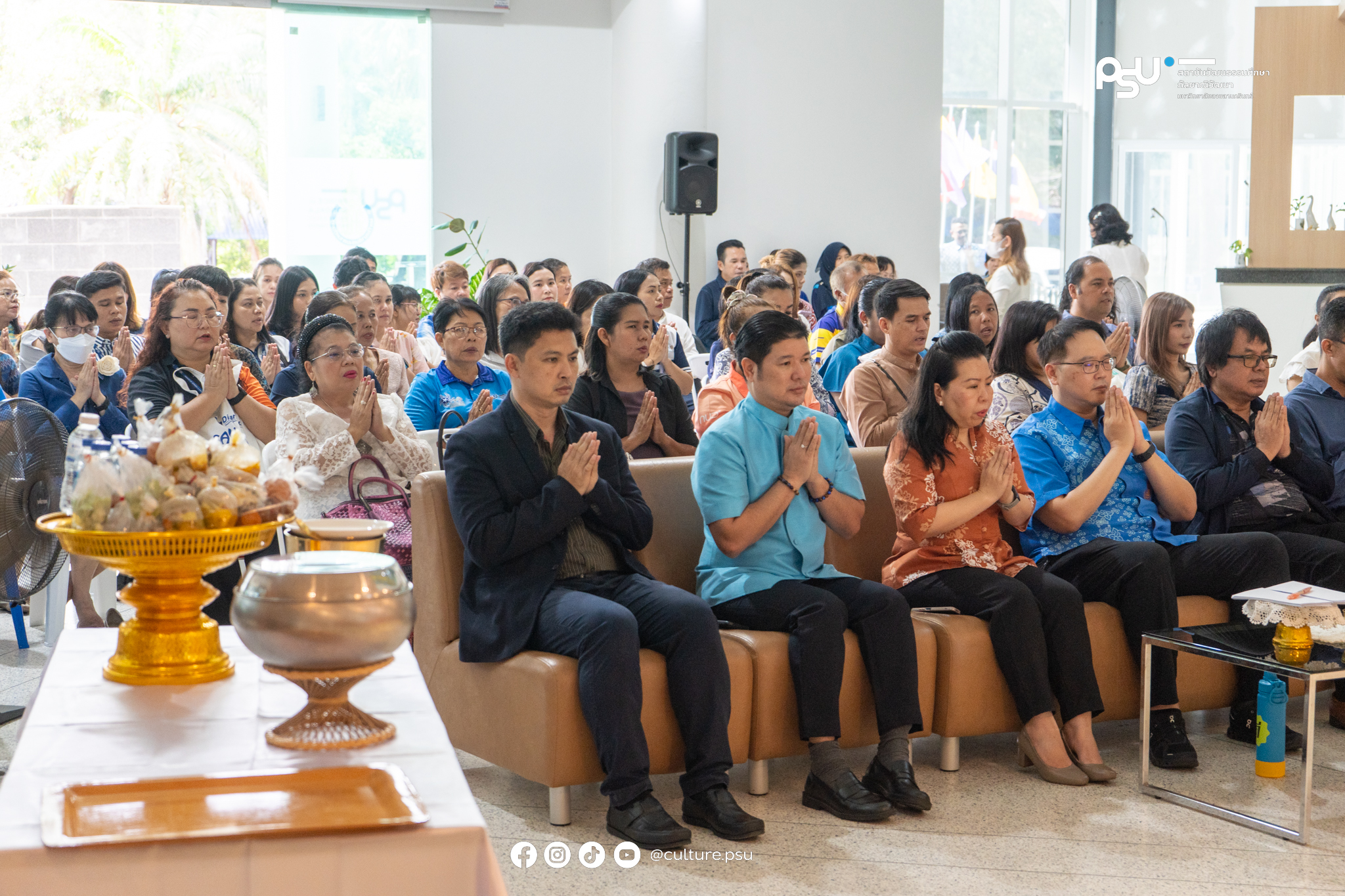 ดร.ปิติ มณีเนตร รองผู้อำนวยการสถาบันวัฒนธรรมศึกษากัลยาณิวัฒนา วิทยาเขตปัตตานี พร้อมด้วยบุคลากรสถาบันฯ ร่วมทำบุญเนื่องในวันสถาปนามหาวิทยาลัยสงขลานครินทร์ ครบรอบ ๕๗ ปี เพื่อร่วมรำลึกถึงการสถาปนามหาวิทยาลัยสงขลานครินทร์ หรือวันที่พระราชบัญญัติมหาวิทยาลัยสงขลานครินทร์มีผลบังคับใช้ ณ โถงทางเข้าอาคาร ชั้น ๑ สำนักงานวิทยาเขตปัตตานี โดยมี ผศ.ดร.อัตชัย เอื้ออนันตสันต์ รองอธิการบดีวิทยาเขตปัตตานี ประธานในพิธี ร่วมด้วยคณะผู้บริหารวิทยาเขตปัตตานี คณะผู้บริหารคณะหน่วยงานต่างๆ บุคลากร ร่วมพิธี