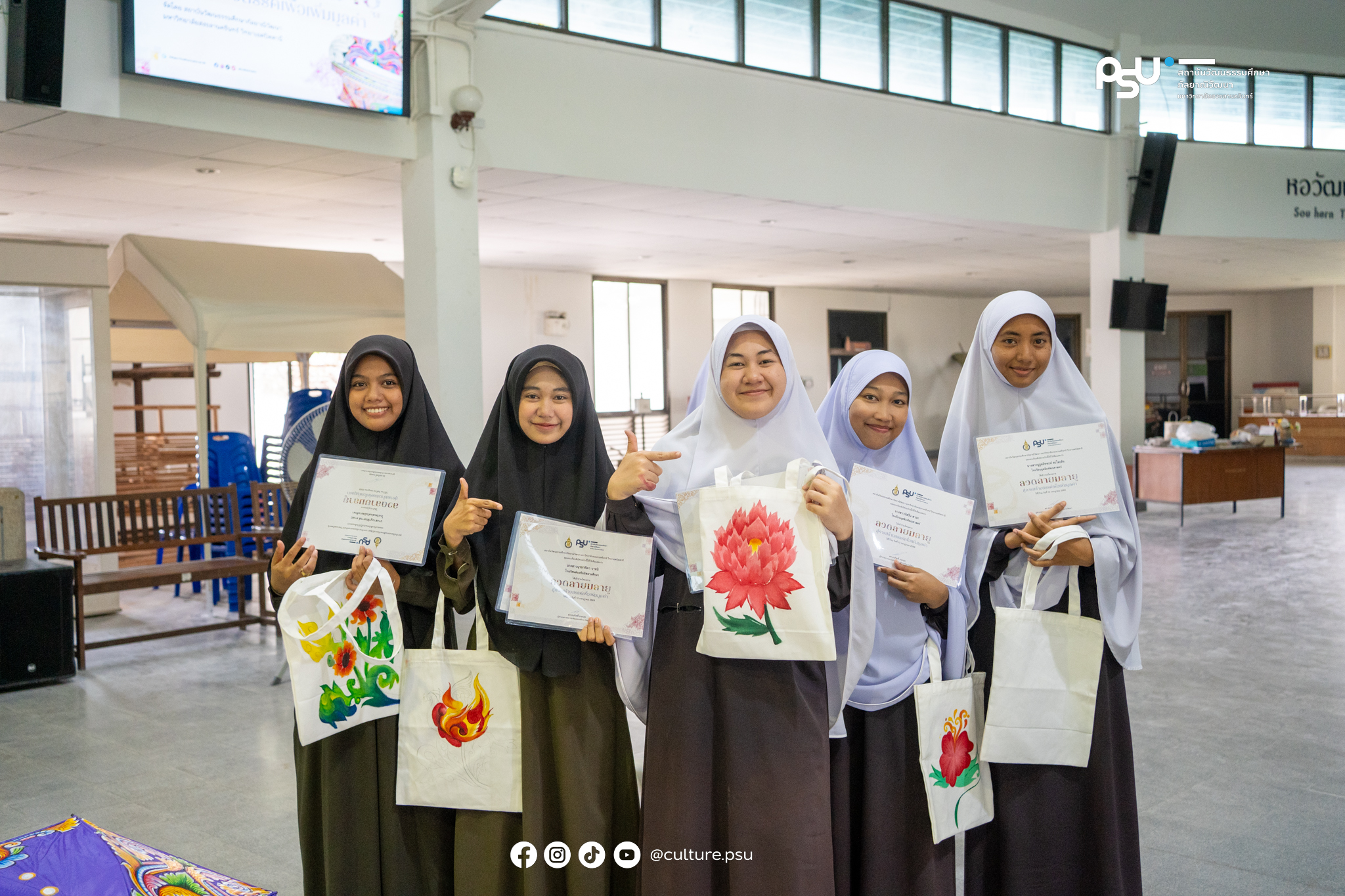 นอกจากนี้ ยังมีพิธีมอบเกียรติบัตรแก่ผู้เข้าร่วมโครงการ โดยได้รับเกียรติจาก ดร.ชนกิตติ์ ธนะสุข ผู้อำนวยการสถาบันวัฒนธรรมศึกษากัลยาณิวัฒนา เป็นประธานในพิธีเปิดงาน โดยโครงการนี้นับเป็นส่วนหนึ่งของการขับเคลื่อนพันธกิจของสถาบันในการเสริมสร้างสังคมพหุวัฒนธรรม (SO4) และยกระดับเศรษฐกิจสร้างสรรค์ (SO5) ตามยุทธศาสตร์ของมหาวิทยาลัยสงขลานครินทร์ อีกทั้งยังส่งเสริมให้เยาวชนได้ตระหนักถึงคุณค่าของวัฒนธรรมท้องถิ่น และสามารถนำไปต่อยอดเป็นอาชีพหรือพัฒนาผลงานในอนาคตได้อย่างยั่งยืน